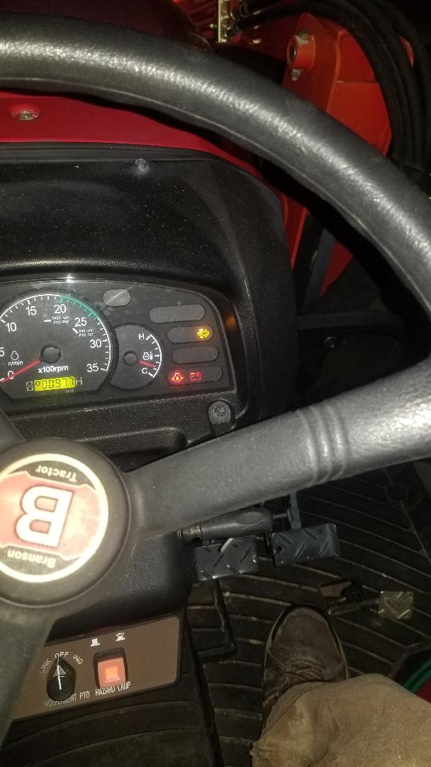 2017 3520R Can anyone Identify this light on my cluster? Tractor as had this for about 2 hours run time over a few days. Has now slowed and will die. This change took about 2-3 minutes. Will start and idle for a minute or two and then choke down and die. Is it telling me clogged DPF ? Does the 3520 have DPF? Tractor is new to me with 93 hours. Thanks in advance.
