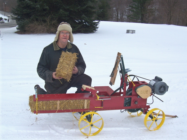 This is a replica of a 1923 case haypress that I built from blueprints. The main gears came from an old windmill pumpjack. It produces a 5x7x13 inch bale. I fabricated all the parts except for the gears. It is fun to watch it work.