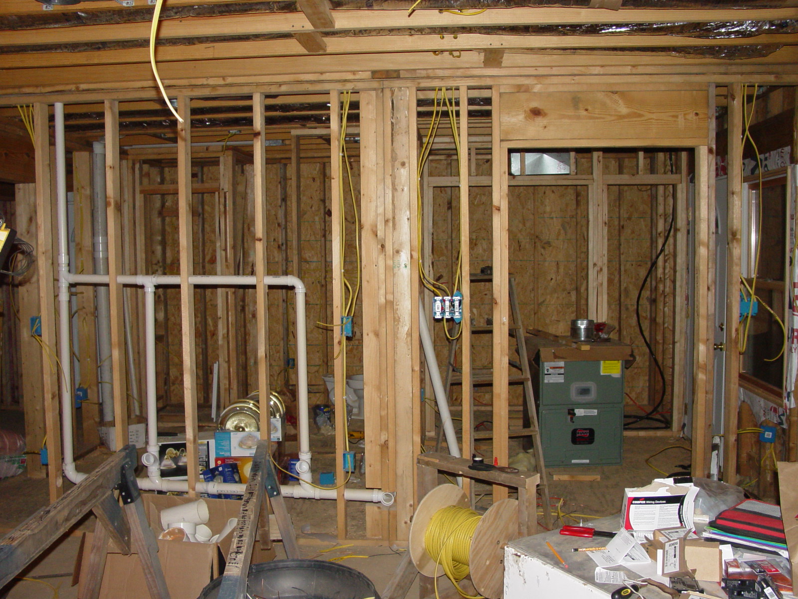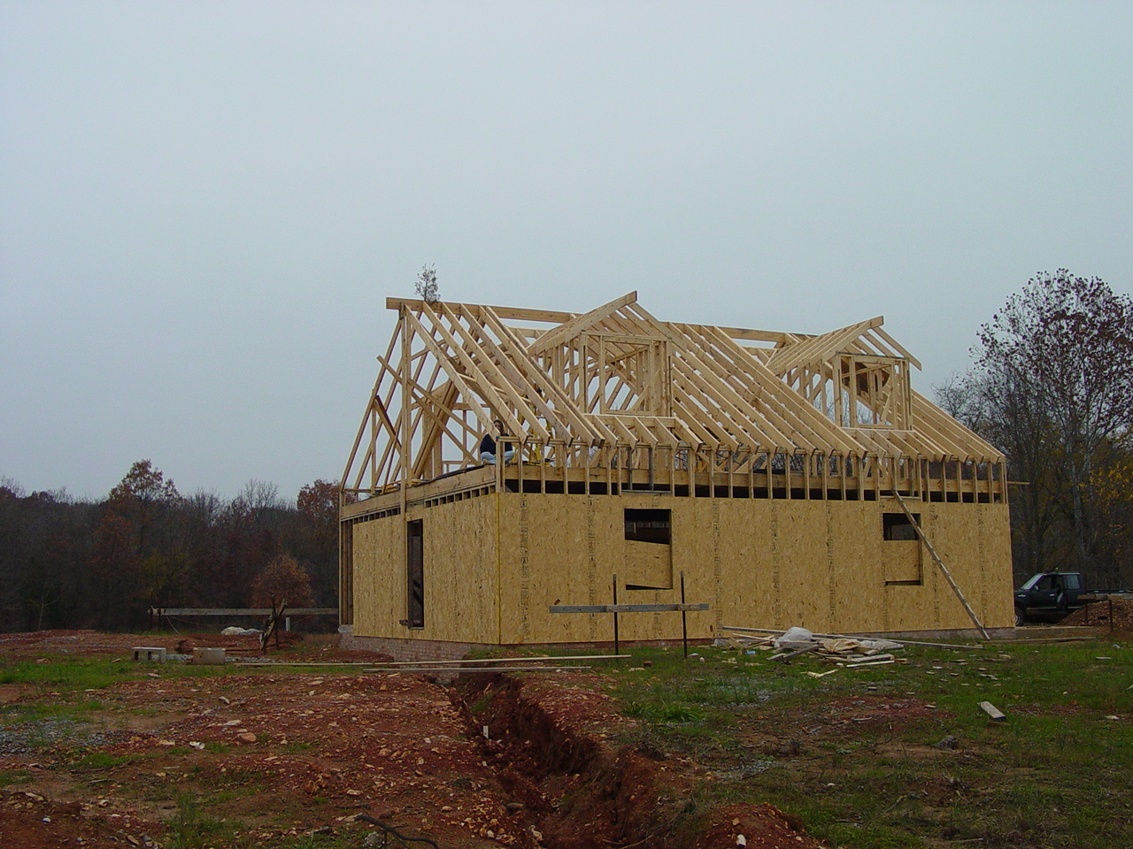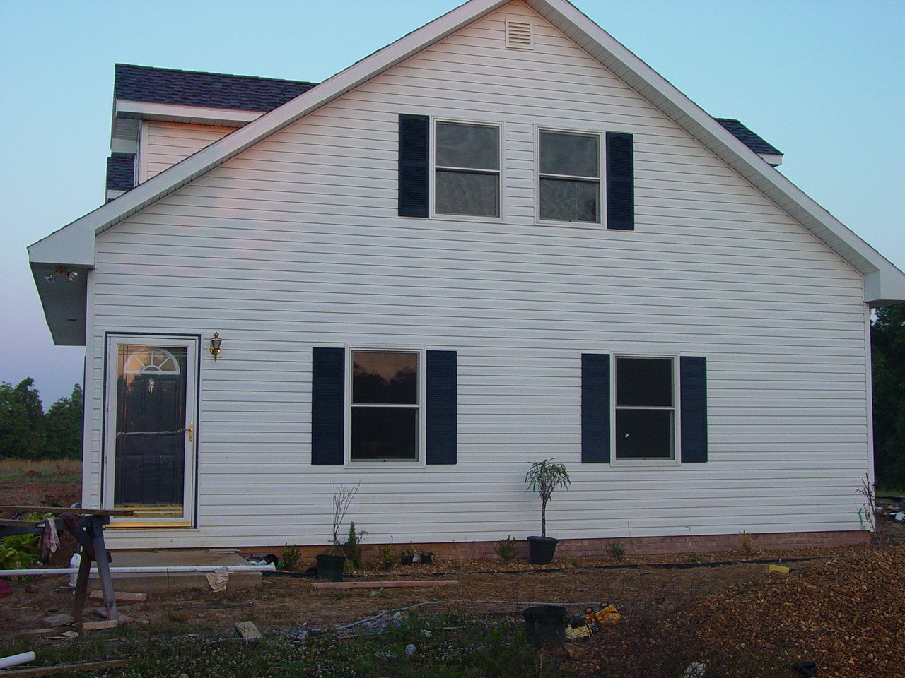The run up to building this house was that when we first married, we purchased and renovated a 1971 12x56 mobile home and set it on the farm for about $3,000. We have saved our pennies since then, and the house, as it stands now on land that we own, is free and clear (i.e. no mortgage). It is not perfect, but it is ours!