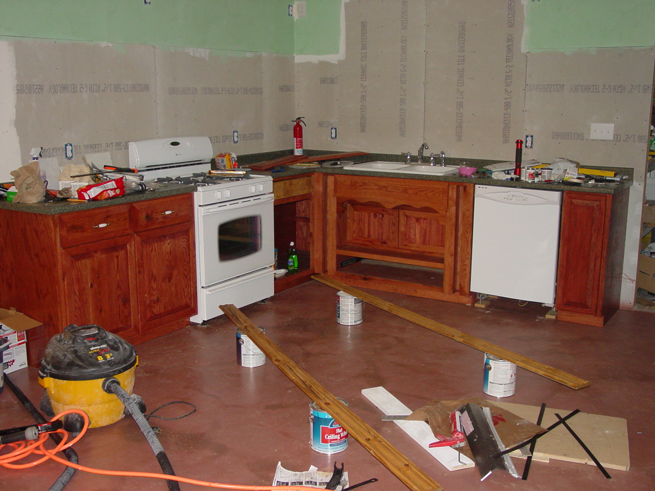 Building the cabinetry is far and away the most gratifying/fun part of this whole process. We had planned on purchasing cabinets, but we looked at the box store cabinets (expensive junk), local discount outlet assemble yourself cabinets (cheap junk), and even allegedly Amish built custom cabinets from a local shop (that still used particle board shelves, plastic corner braces, $1.89 drawer glides, etc). I was disgusted I decided to build them myself. We purchased rough red oak and maple from a saw mill, stickered it and let it dry, and I got to buy table saw/planer/jointer/drill press/compound miter/molder/lathe/bandsaw/sander/etc. for less than the price of the cabinets from any of the sources. I even learned how to make dovetails for my solid maple drawers and raised panel doors, etc. I still have so much more to do and so much more to learn, though.