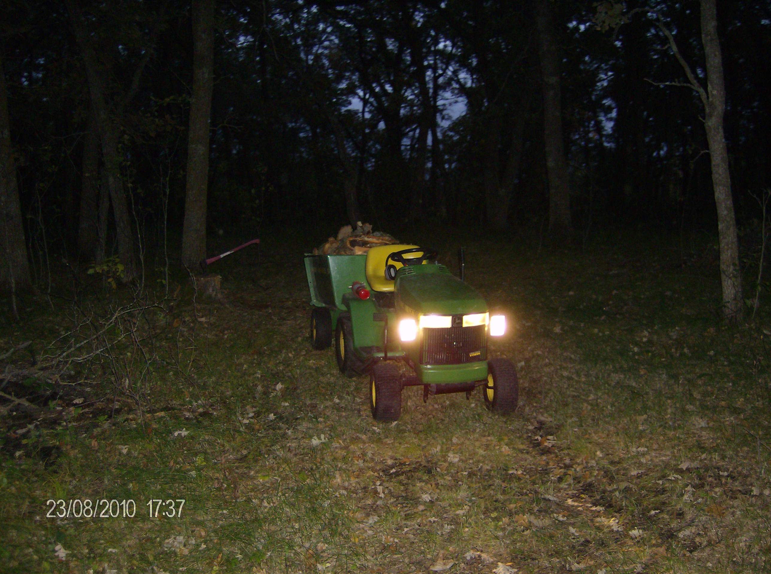 For some reason, I generally seem to have to move snow at night. Headlights bounce back more light from blower or loader than they send forward, so that's NG. Those cute little side-lights on the 1026R turn out to be on pointable mounts - if it says that in the manual, I missed it. Anyway, aiming them down and outward seems to send enough light bouncing around to be more helpful.