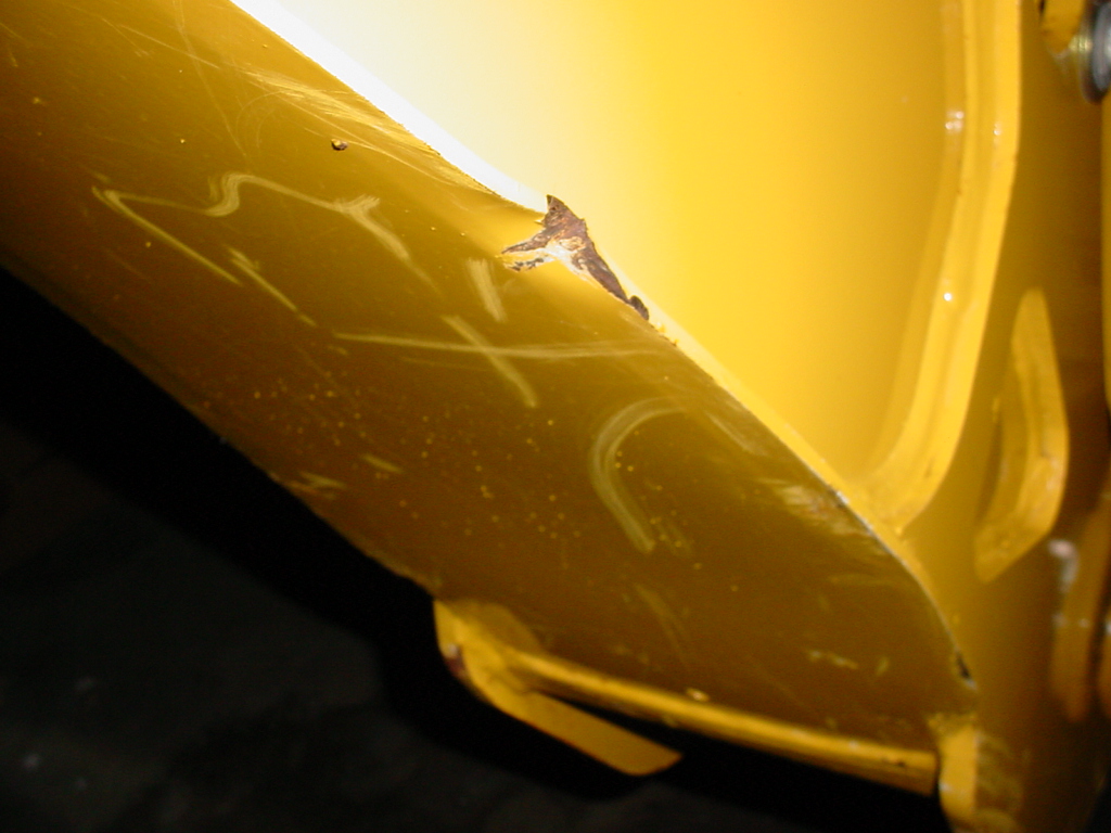 Ok... here's when I'll have to admit to making a dumb @ss move with my 110 backhoe!'Cause I've got a dent along the edge of my boom arm - just like that!!!