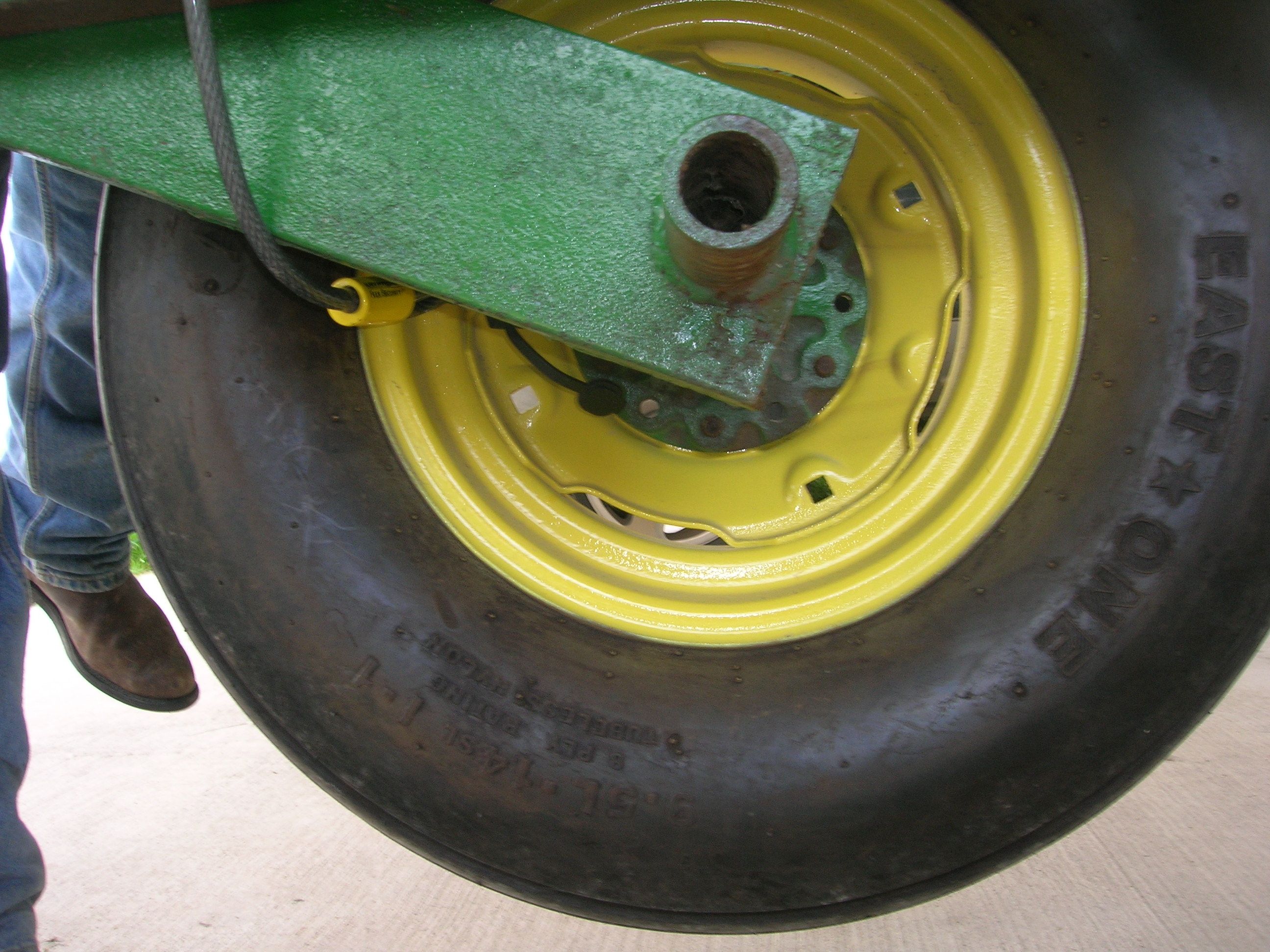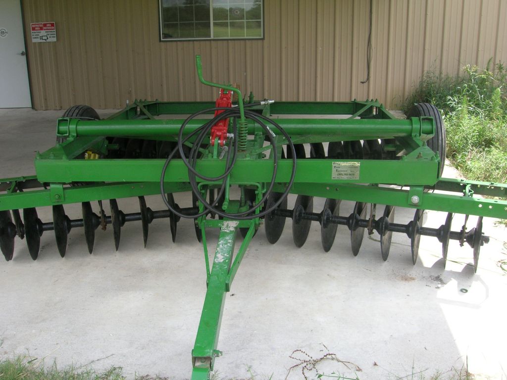 I purchased this disc second hand from a guy out in the country who said it was John Deere 330...it was recently acid washed to clean up the rust, and then repainted...its got new tires and a new cylinder...one problem though it has a few broken discs on it. I called up a few JD dealers for the parts, and they said the discs should 22-24" on a 330. These are clearly 17-18" discs. So I sent him a picture of it, and he doesnt even think this is a John Deere Disc.