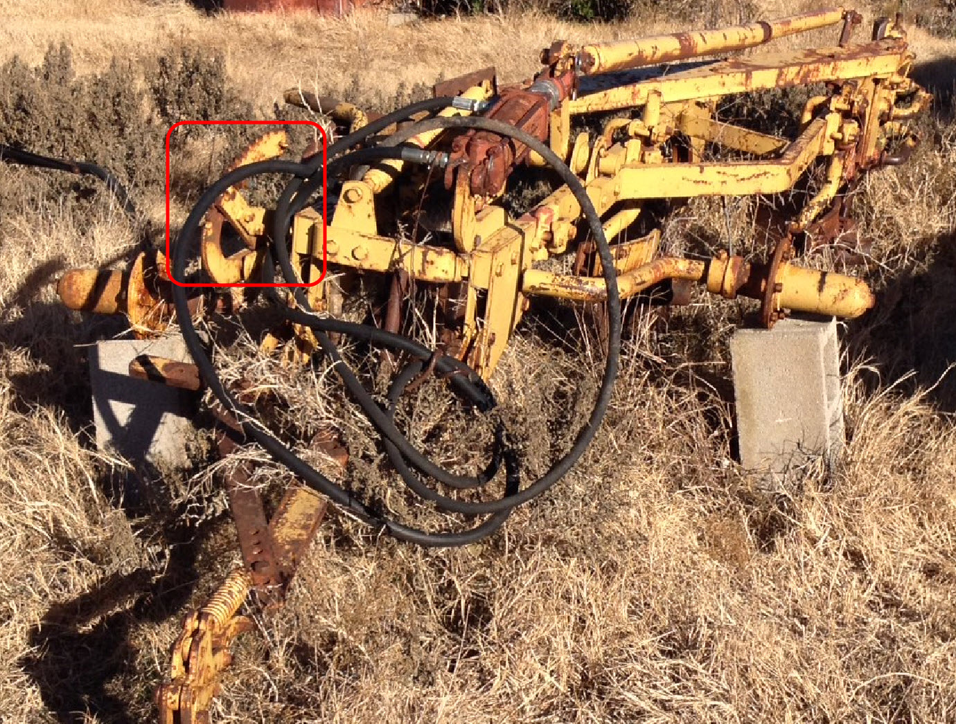 EDIT: I found a picture of the plow, and maybe the area I've highlighted was once a transport latch, or at least a depth control of some sort. You can also see the existing cylinder. I have the wheels off, replacing the ancient/rotted rubber. View attachment 352921