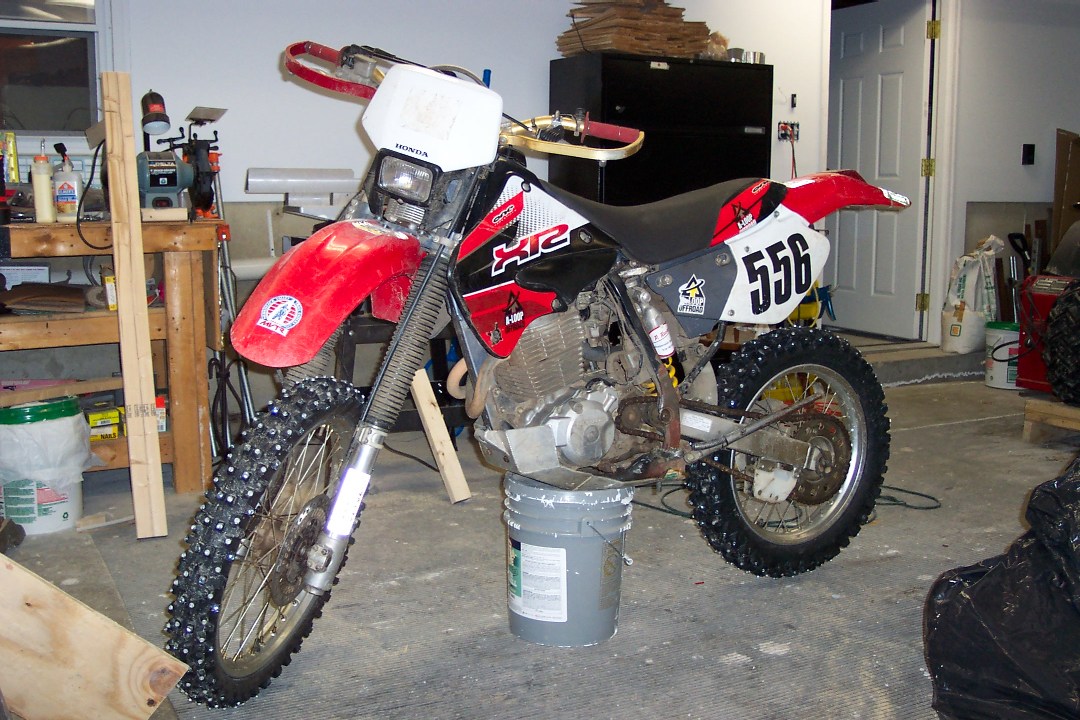 Back in the 80's I used to ice race motorcycles. We would take trials tires and put sheet metal drive screws in them just like you did. Gave great traction going sideways!