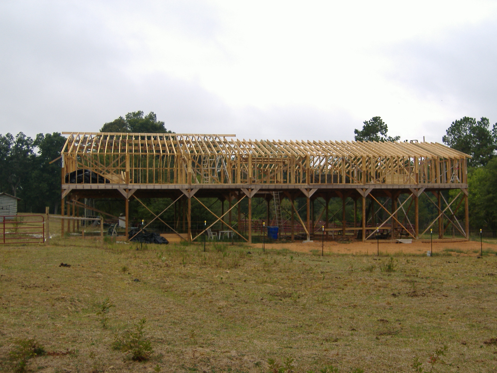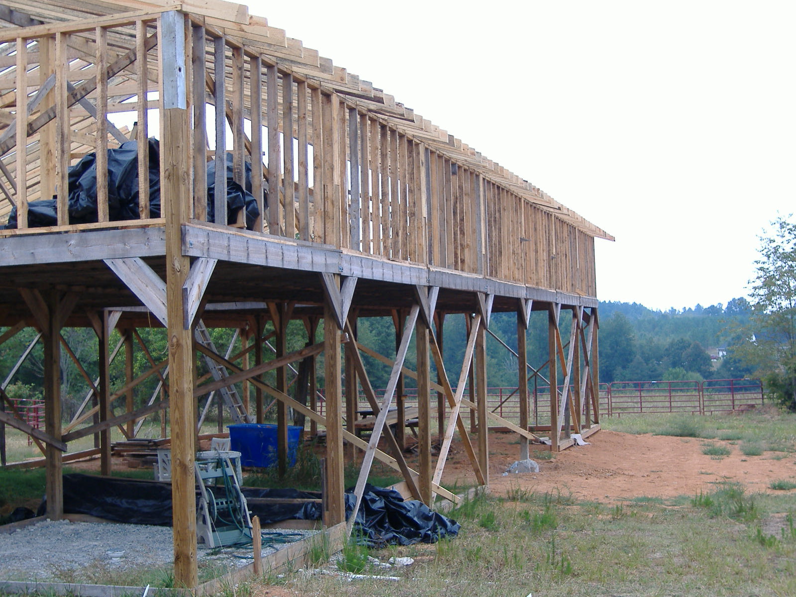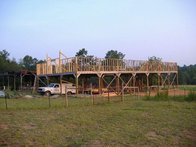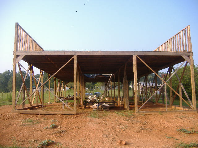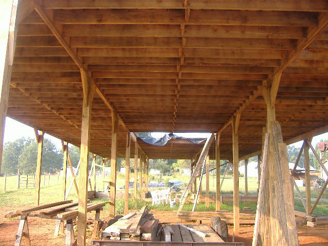 OK. I've been promising photos and finally got a camera handy. This project is being done by my friends and family. All the wood is rough sawn except for the posts which are 6x6 treated.