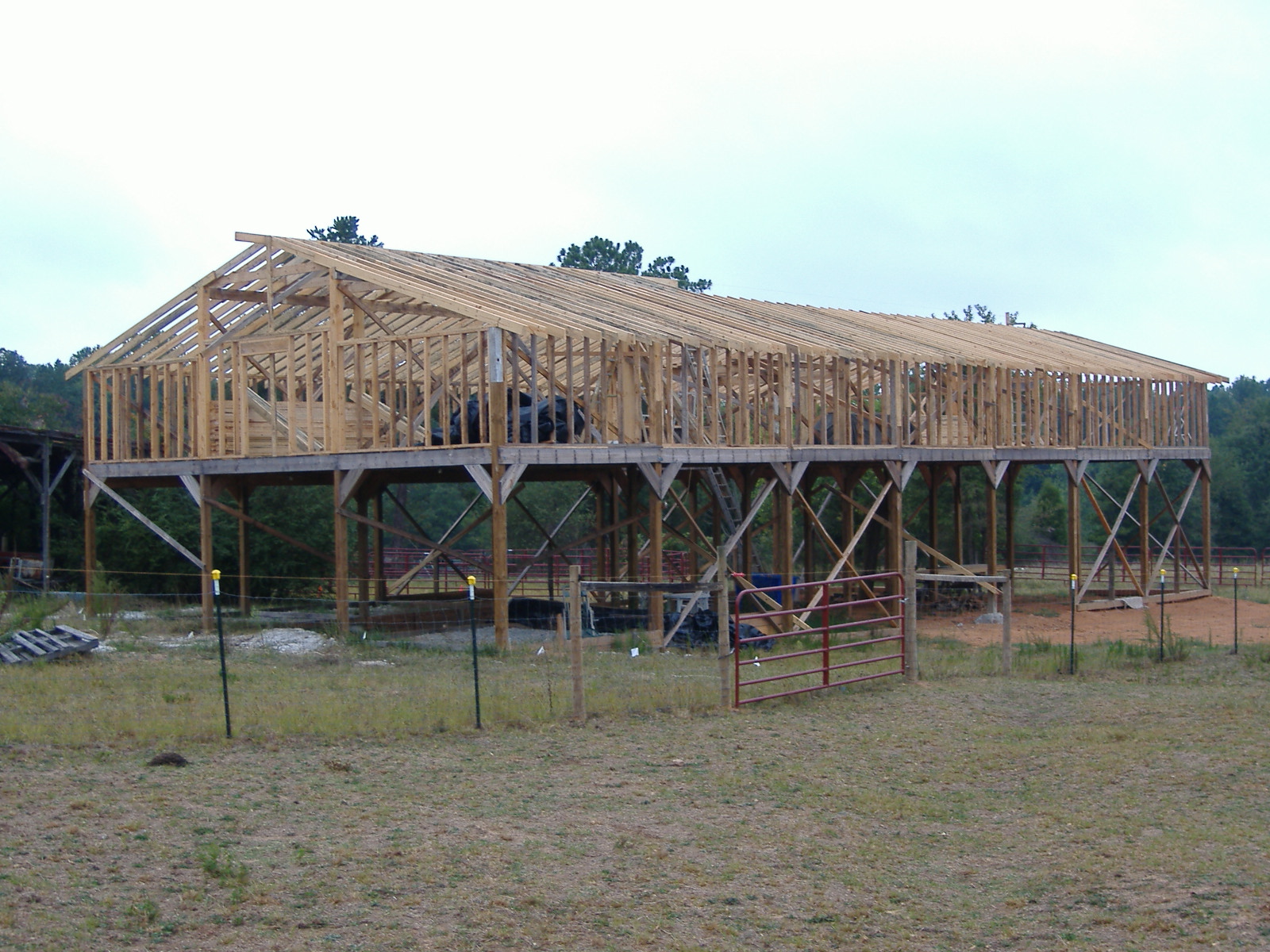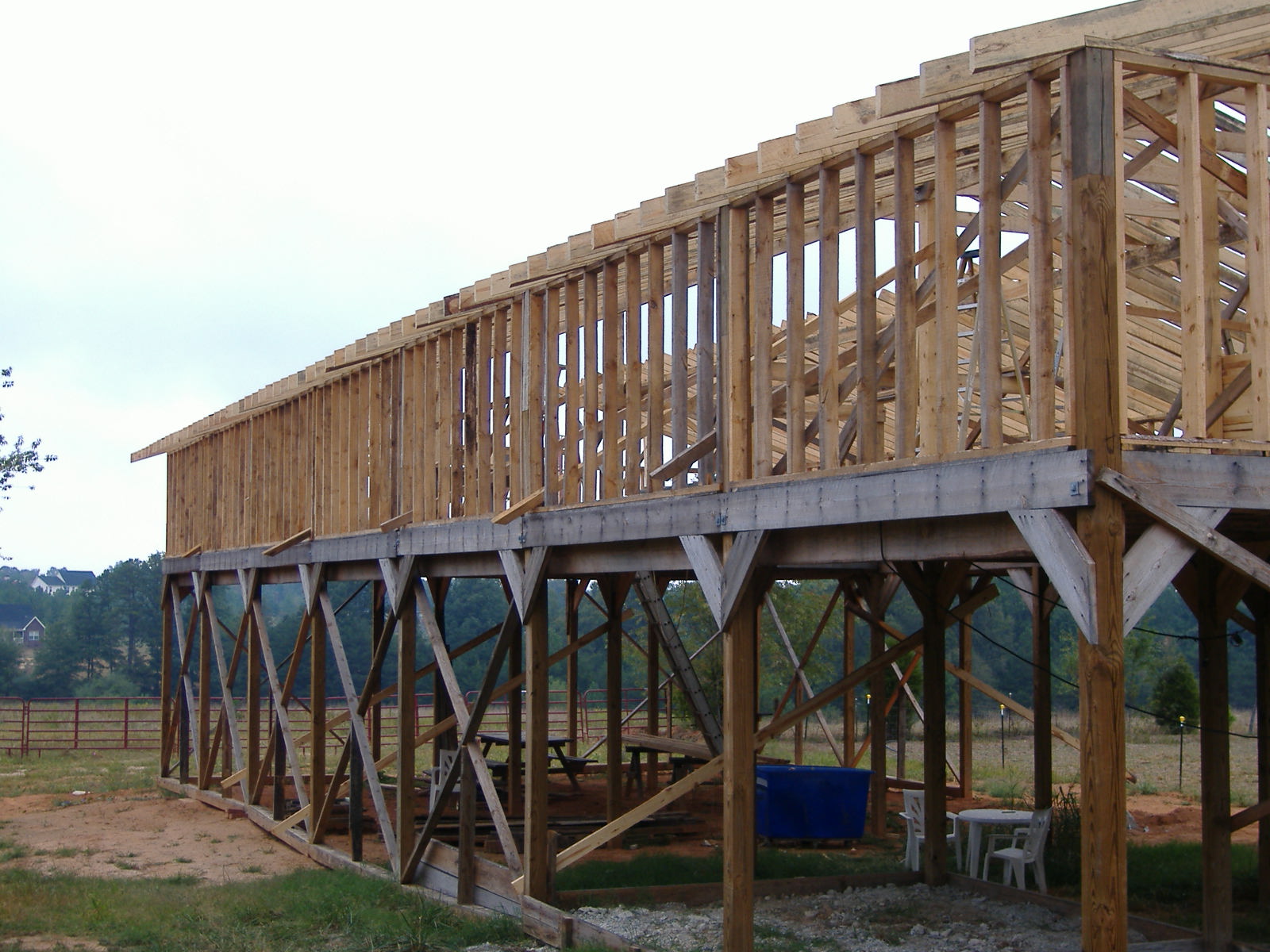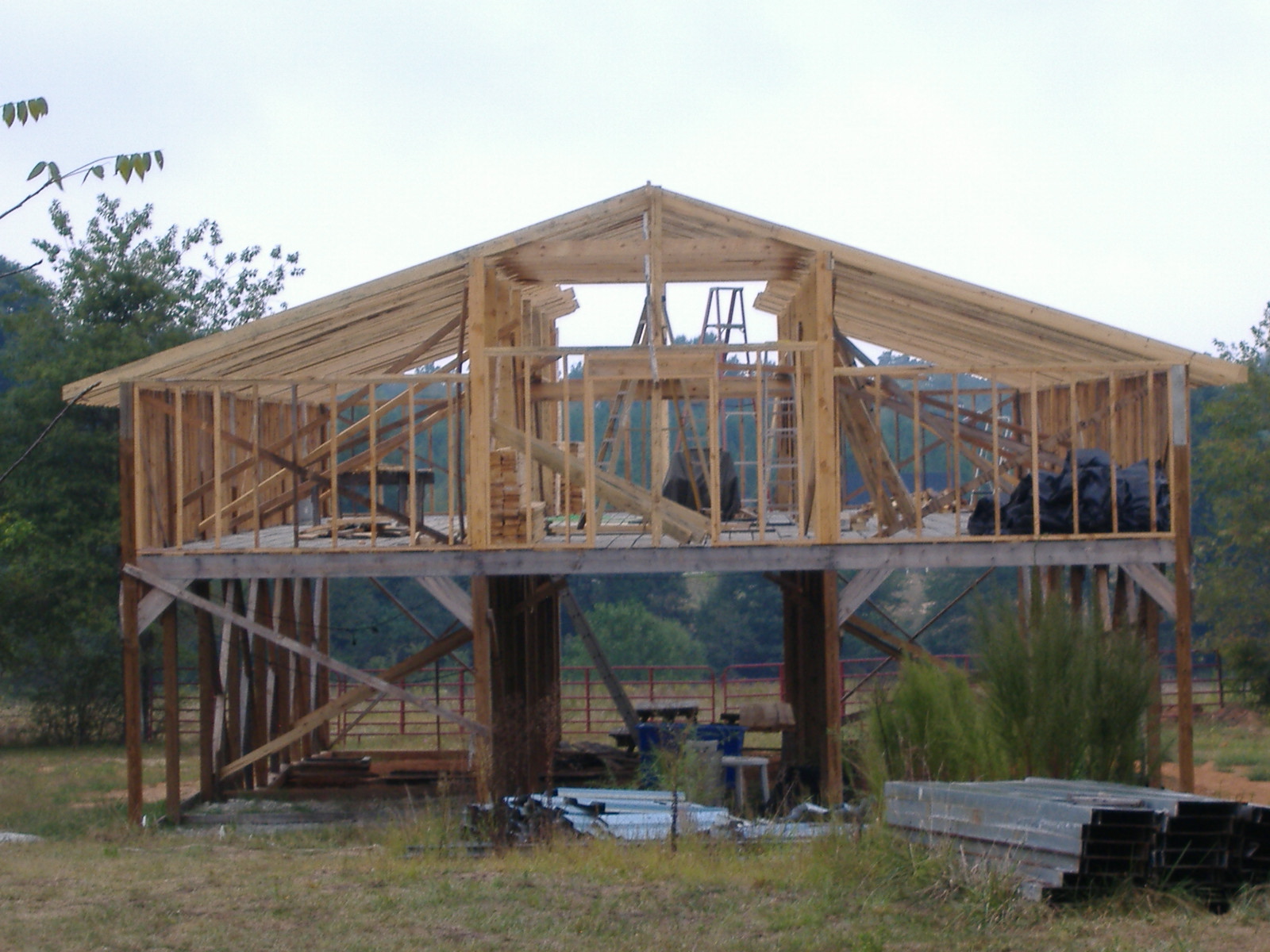 OK. I've been promising photos and finally got a camera handy. This project is being done by my friends and family. All the wood is rough sawn except for the posts which are 6x6 treated.