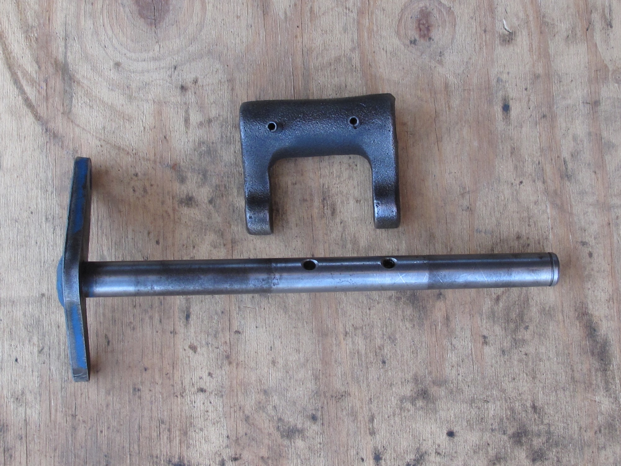 Well the day today was absoutletly great. It started off in the low 30's and finished up in the low 70's and not a cloud in the sky. I finally had time to get back to working on the tractor engine. I have priced a clutch alignment tool at $31.00. Now some folks call me tight but, I just can't spend that much on a one time use item. At least I hope I don't need it agan. I wanted to look at the front seal on the transmission and in the process pulled the front shaft out to use as an alignment tool. In the first picture you can see the result. The second picture shows the arm and forks that operate the clutch. The fork was attached to the arm with 2 roll pins and the pins were safety wired in place. The next picture shows the housing (cleaned with new release bearing) and transmission input shaft. The housing was held on by 4 bolts and has an "O" ring and shaft seal. The seal looked good with no signs of leaking but the shaft had a bit of corrosion as it has been sitting up for several years. The last shot is the shaft in use to align the clutch. Oh by the way the end of the crankshaft is tapered and the flywheel mounts with a key and a 2 1/2" nut torqued to 325 ft lbs.
