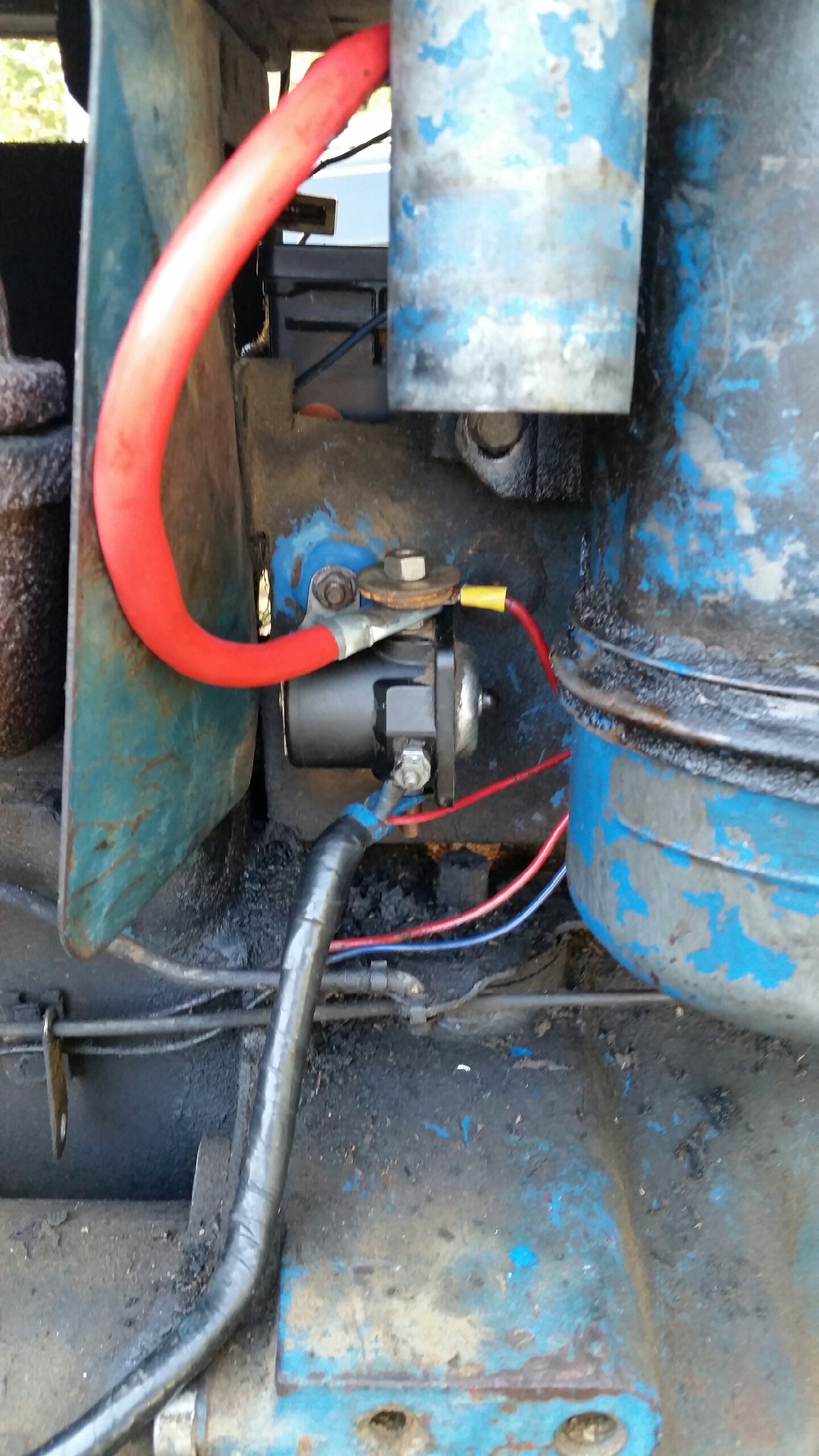Well go to crank it back up, and I just get the click, and nothing happens. Sounds like the push button just makes a connection then nothing. Now I push the button and I get no sound, not even the click as if the battery was too low to start it. Ive tried jumping the battery, even took the battery out of my truck and still nothing. I have been testing all the wiring to make sure its getting voltage. I get power to the solenoid, and power goes to the starting push button as well. BUT, when I turn the key to on, all the voltage goes away, even if I put a test lead on the battery terminal, it registers about 1-2volts and thats it. But turn the key off, and everything to the solenoid goes back to registering 12 volts. I put on a new solenoid and this didn't fix the problem. Is there some sort of short im missing somewhere? I don't know where to go with this. Another odd thing is the lights work sparatically. Sometimes they come on when I pull the nob, sometimes not. Any help will be appreciated.