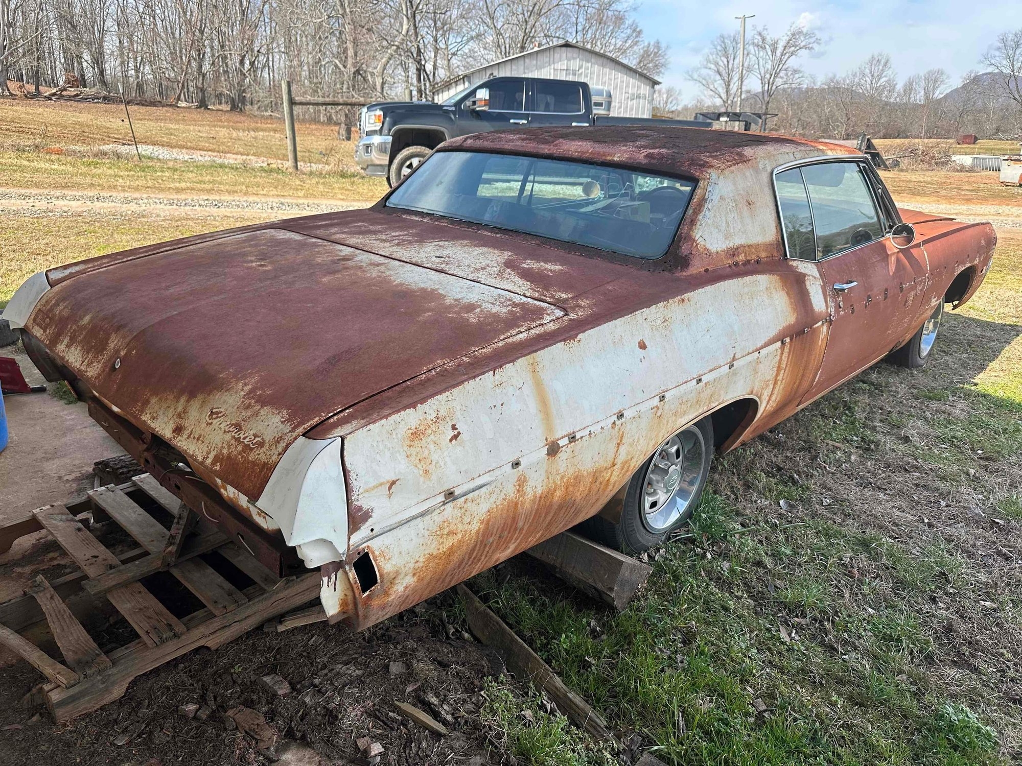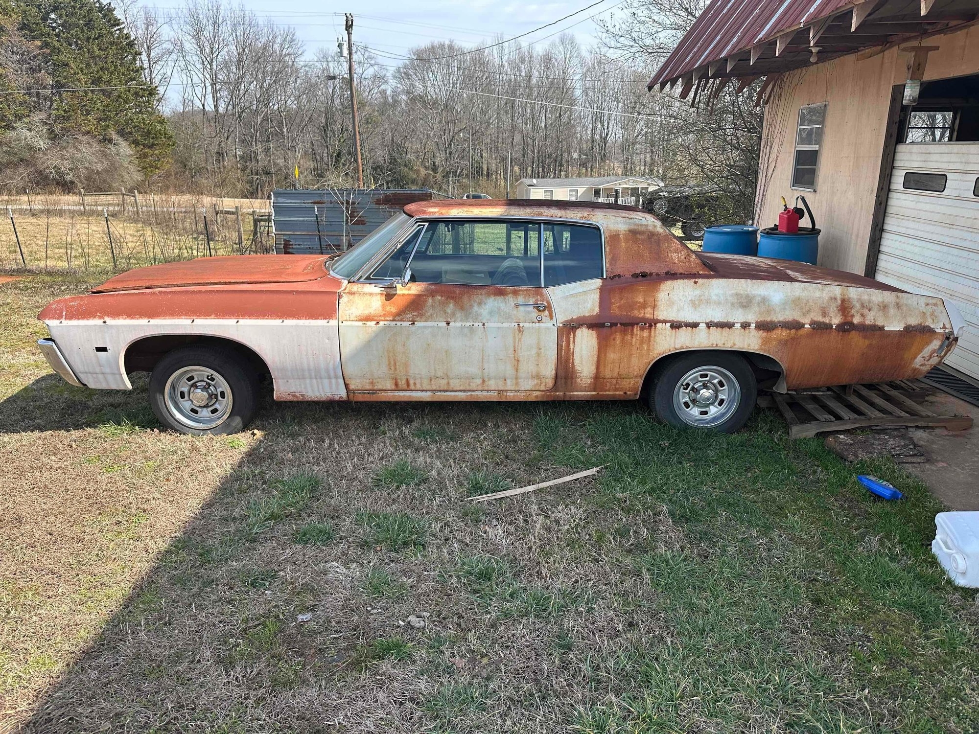 Located offsite in Cleveland, GA - 1968 Chevy Impala - automatic transmission - 3247 engine - runs - needs fuel pump and fuel tank - VIN # 164478D175070 - no title/invoice only