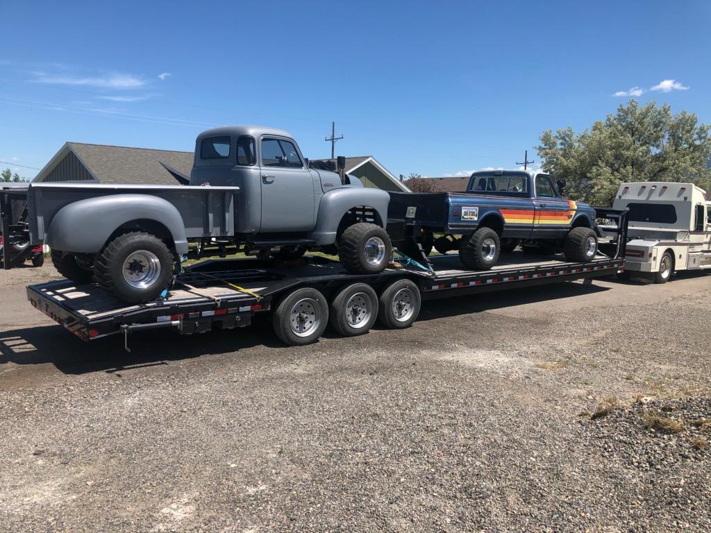My Montana in-laws headed to the first pull of the season, Burley, Idaho (6-27-20) IH tow truck and 40' Load Trail. The dyno sheet is the blue GM.
