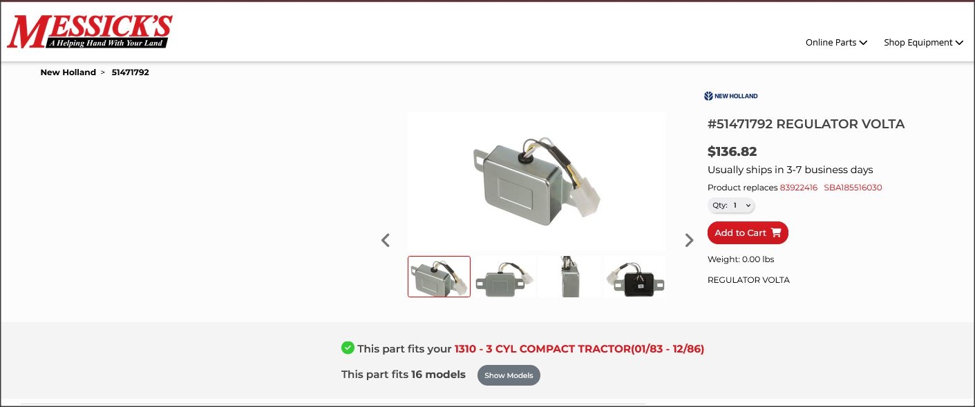 I'm looking for a direct fit VR for my 1986 Ford (Shibaura) 2110 4x4 Diesel. Search engines have been usless, trying to sell me everything that DOES NOT FIT! Ebaymotors and Amazon show nothing that will fit. (already returned one)