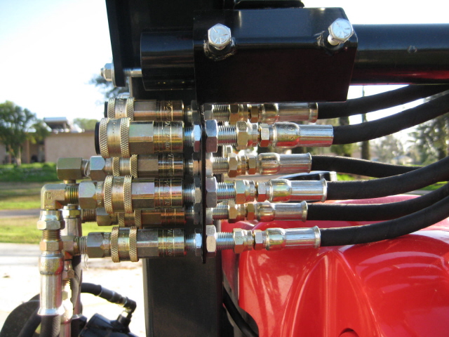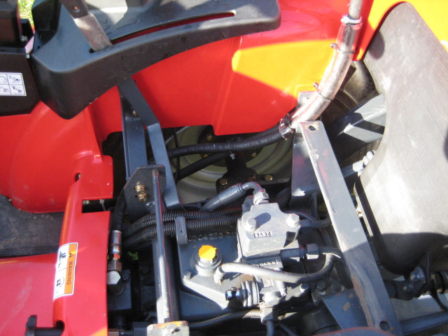 Well it happened sooner than I expected but what can ya say? Was doing some loader work this afternoon and I hear a "Hissss" look down and see a stream of fluid shooting out just behind the left front tire. I jump off, get a closer look, whoops - I quickly high-tailed it over to the garage and shut her down. The hyd hose going to the bottom & rear of the gear pump had been rubbing against the loader frame and just blew out. I'd never noticed it rubbing before...course why should I be inspecting the fitment of hoses on a brand-new machine? Anyhow, I can see where it attaches to the pump but it then routes up under the cowling below the stearing(sp?) wheel and I have no idea where it ends up at? I have no service parts manual (or active dealer for that matter) and I would just as soon fix it myself. I realize that these kinds of things eventually just happen. I know that because it's new hoses should be covered under warranty but I don't have an active TYM dealer close to me and I'd rather just get it fixed as soon as possible.