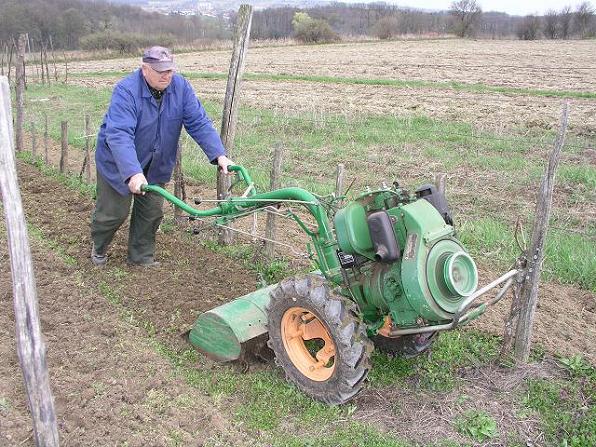We were tilling yesterday our old vineyard. Soil was really hard, and walk behind tractor, borrowed from a friend, had hard time to break compacted clay soil. Also father (on pic) had hard time to make several feets of tilling (when I take a pics /forums/images/graemlins/grin.gif )