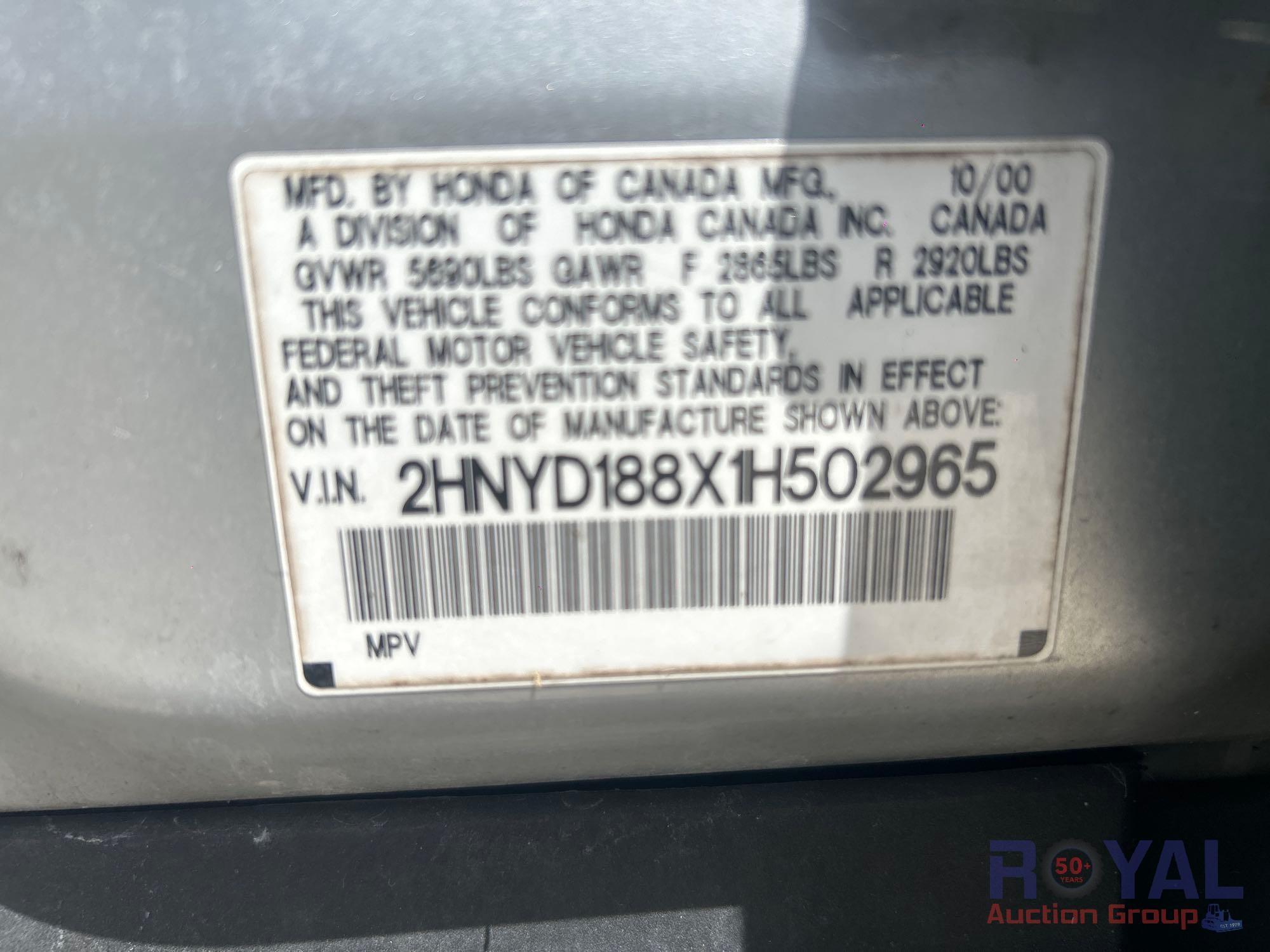 VIN:2HNYD188X1H502965, Odom reads: 224,623miles. Powered by a 3.5L V6 gas engine, automatic transmission. Equipped with: VTM-4 Lock, sunroof, pwr windows, locks, mirrors, seats, steering wheel cruise and media controls, am/fm stereo with cd player, digital infotainment system, dual climate control, dual heat seats, and 12v charger. Runs and drives. Limited function check completed at check in.