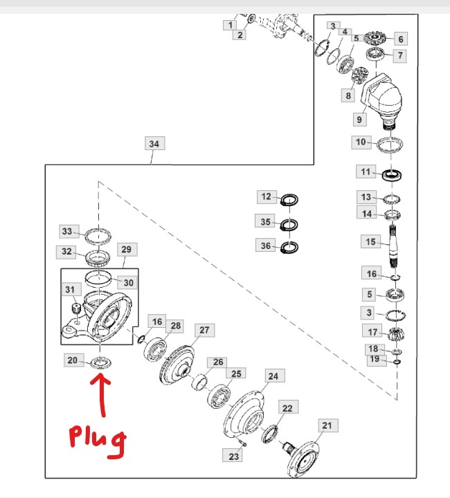I read Dee Gaylord's excellent youtube tutorial on front axle seal replacement for his 4310. I also have a small oil drip out of the plug (about 3" diameter) at the bottom of the front gear case. It looks like you have to punch it and pry out and replace ($12). Looks like it keeps oil in and dust out of the bottom of the gear case. Part number LVU25556 or LVU20868. Any help is appreciated.