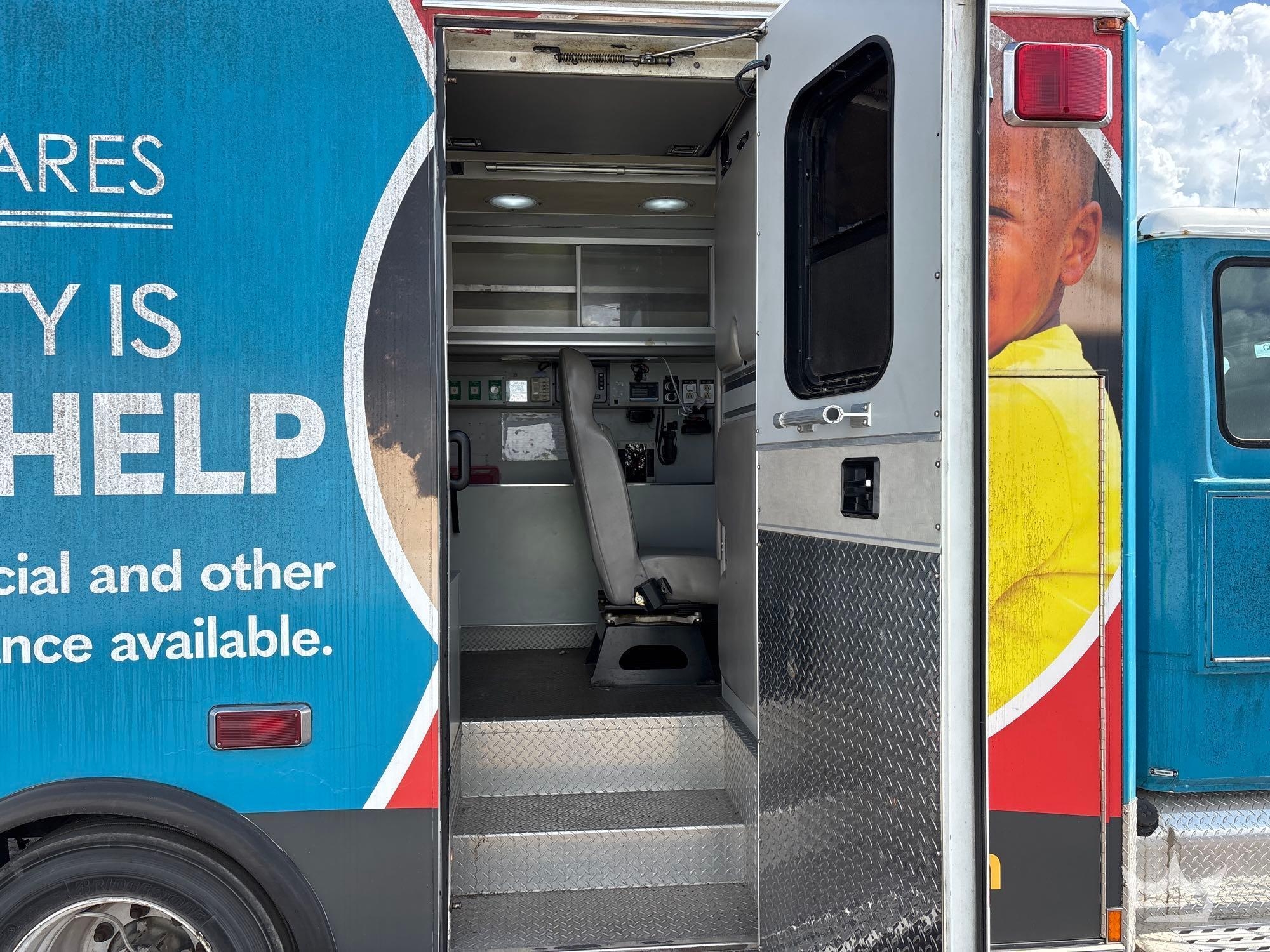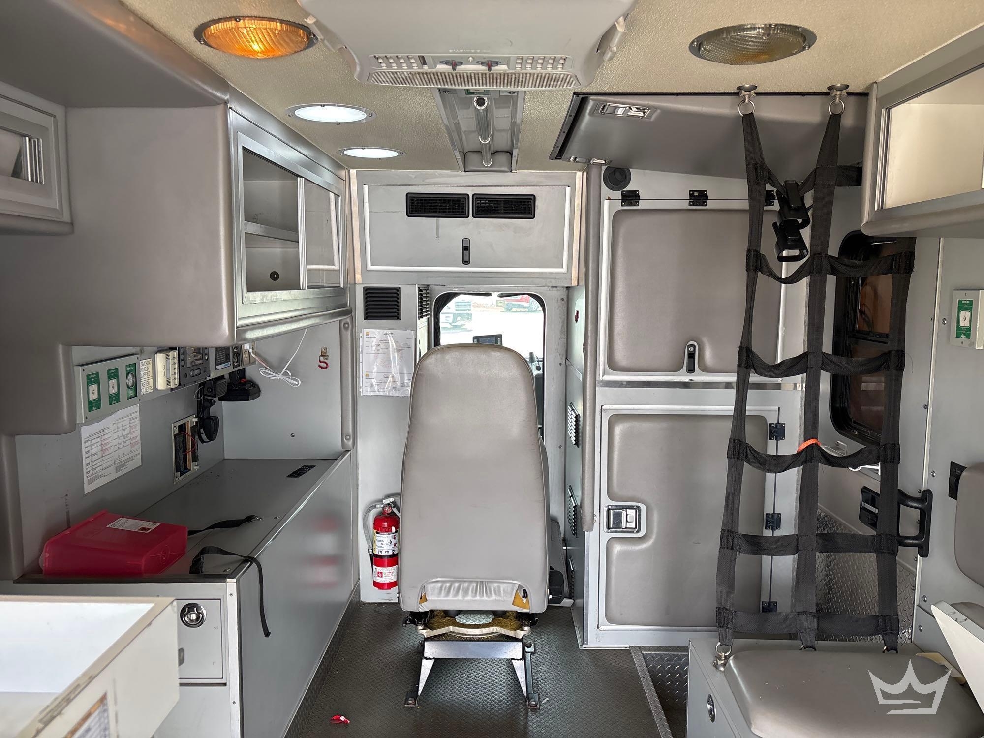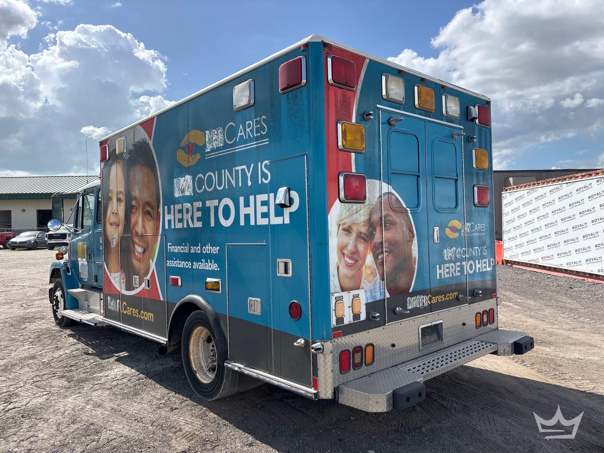 Location Fort Myers, FL (Lee County Fleet Management); VIN:1FVABPBWX3HK54141 Odom Reads 414,285 miles, pwd by 5.9L 6-cylinder diesel engine, Allison automatic transmission. Equipped with: ambulance body package, paramedic and passenger seating, oxygen delivery outlet, Engel portable fridge, Vanner IQ2600 Power Inverter, internal and external storage compartments, emergency lights and sirens, 4x2 drive line, GVWR 20,000 lbs, front GAWR 8,000 lbs, and rear GAWR 12,000 lbs, Whelen traffic advisor system, pwr windows, mirrors and locks, Weldon display screen, AC/heat. Runs and drives. Limited function check completed during check in.
