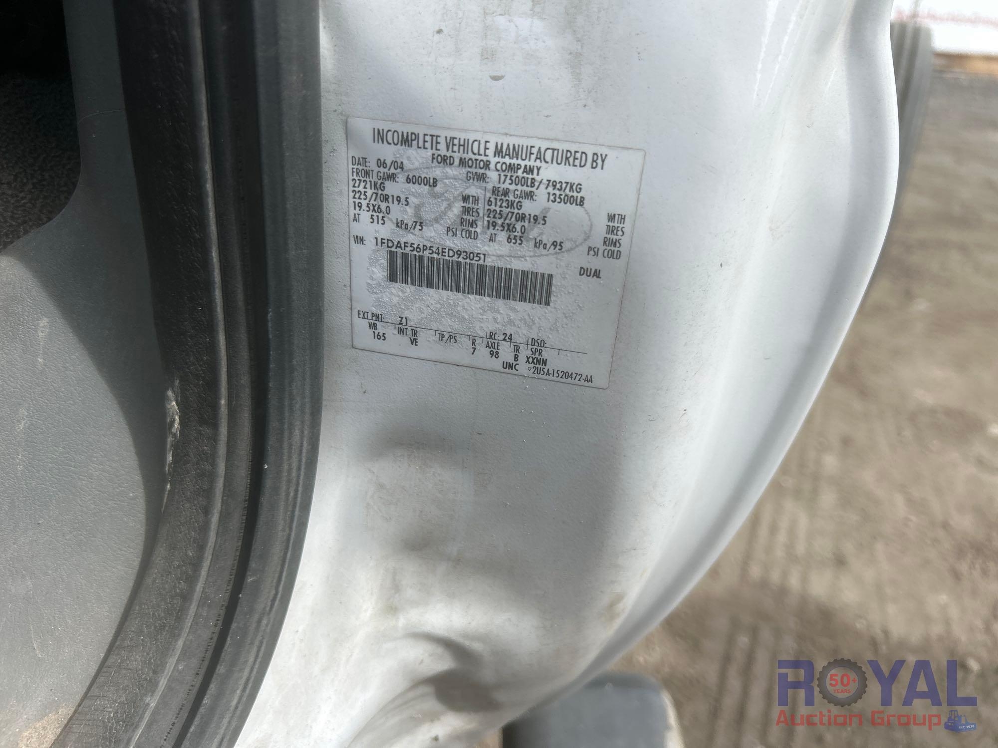 Lee County Fleet Management; VIN:1FDAF56P54ED93051 Odom Reads 90,770 miles, pwd by Powerstroke 6.0L V8 turbo diesel engine, automatic transmission. Equipped with: Rugby mason dump body, hydraulic hoist, tarp system, tow ball hitch, 4x2 drive line, dual rear wheels, GVWR 17,500 lbs, front GAWR 6,000 lbs, and rear GAWR 13,500 lbs, nerf bars, in-cab dump controls, am/fm stereo, AC/heat. Runs and drives. Limited function check completed during check in.