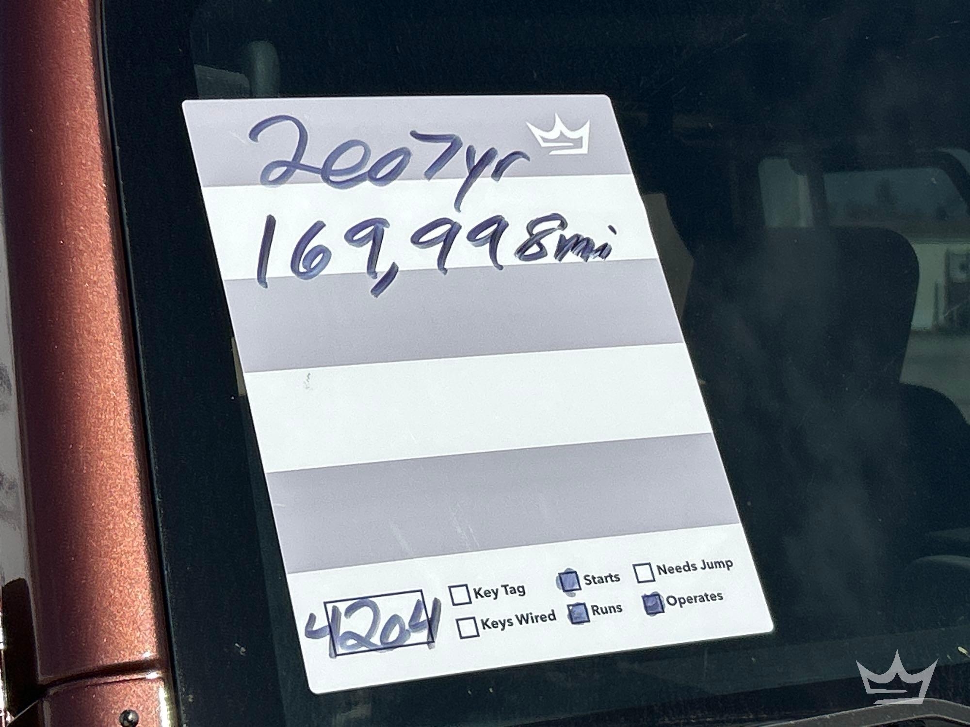 Location: Tampa, FL VIN: 1J4GB59107L204348.Odom reads.169,998 miles.Powered by a 3.8L V6 gas engine with an automatic transmission. Equipped with: pwr: windows and locks, dash screen, cruise control, an/fm stereo, digital infotainment system, removable canvas top and rear, rear bumper guard, tow package, auxiliary driving lights, Runs and drives, Limited function check was completed at check in.