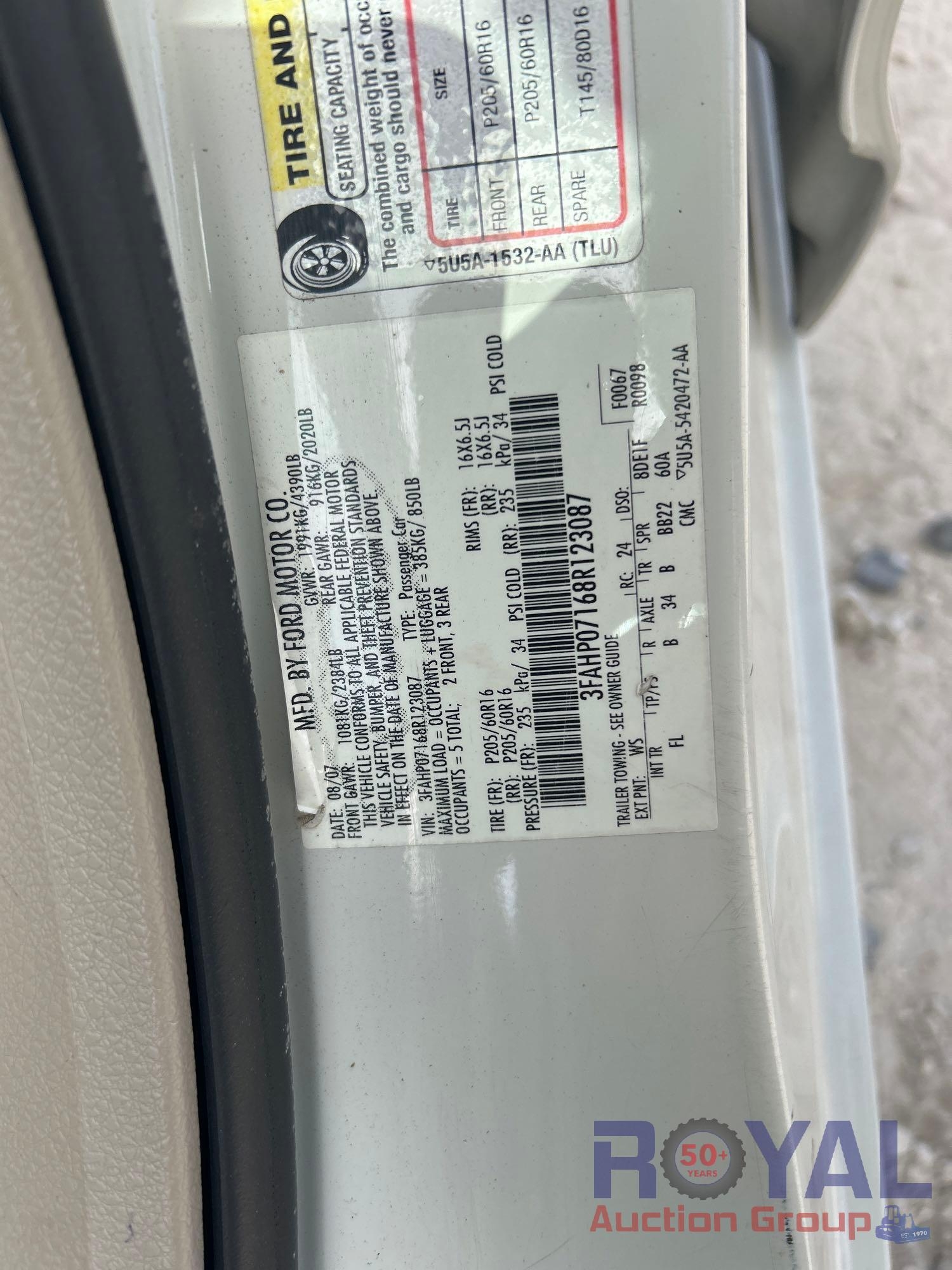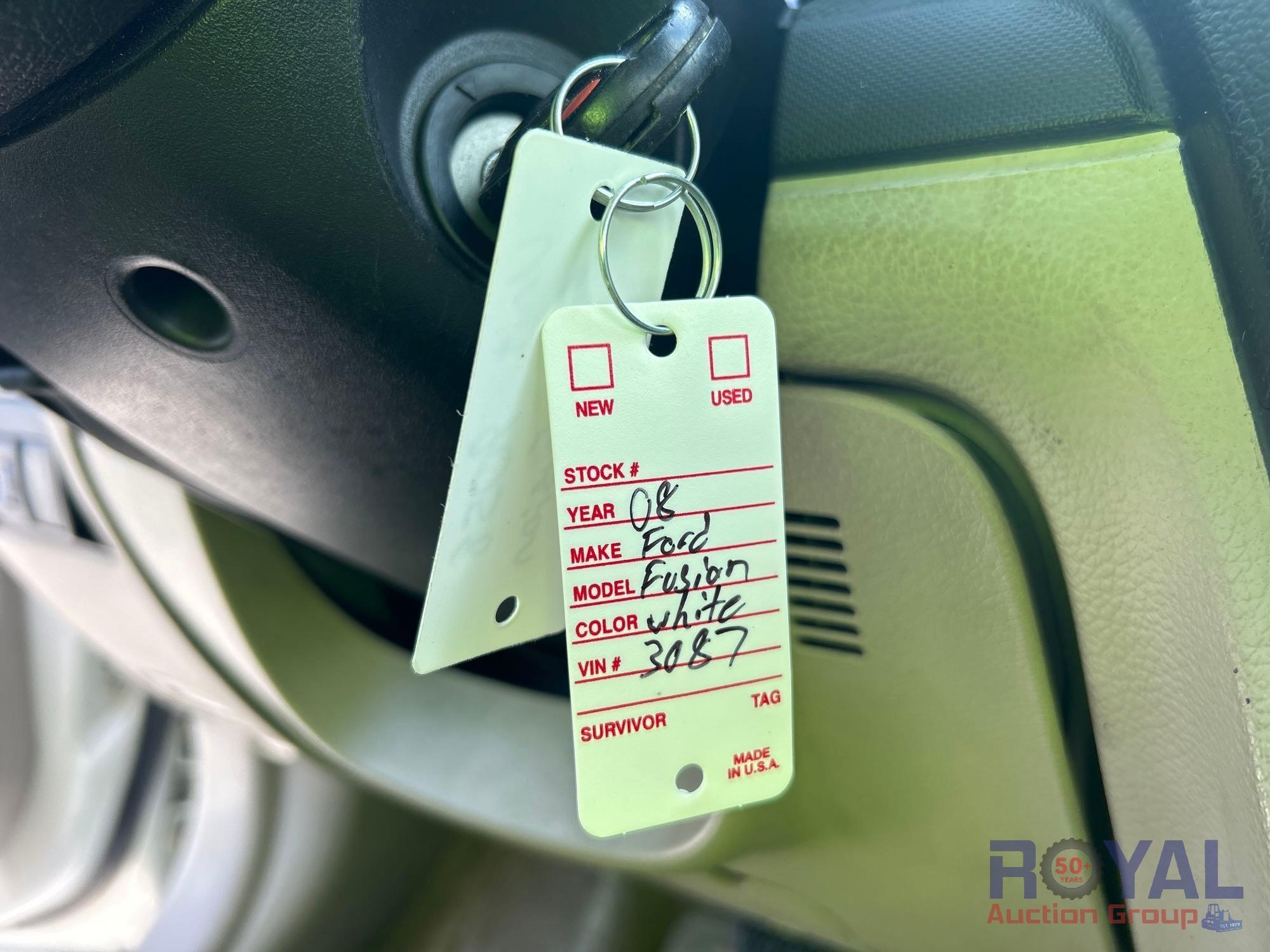 Year: 2008 Make: Ford Model: Fusion Vehicle Type: Passenger Car Mileage: Plate: Body Type: 4 Door Sedan Trim Level: SE Drive Line: FWD Engine Type: V6, 3.0L Fuel Type: Gasoline Horsepower: 203HP Transmission: VIN #: 3FAHP07168R123087 Features and Notes: