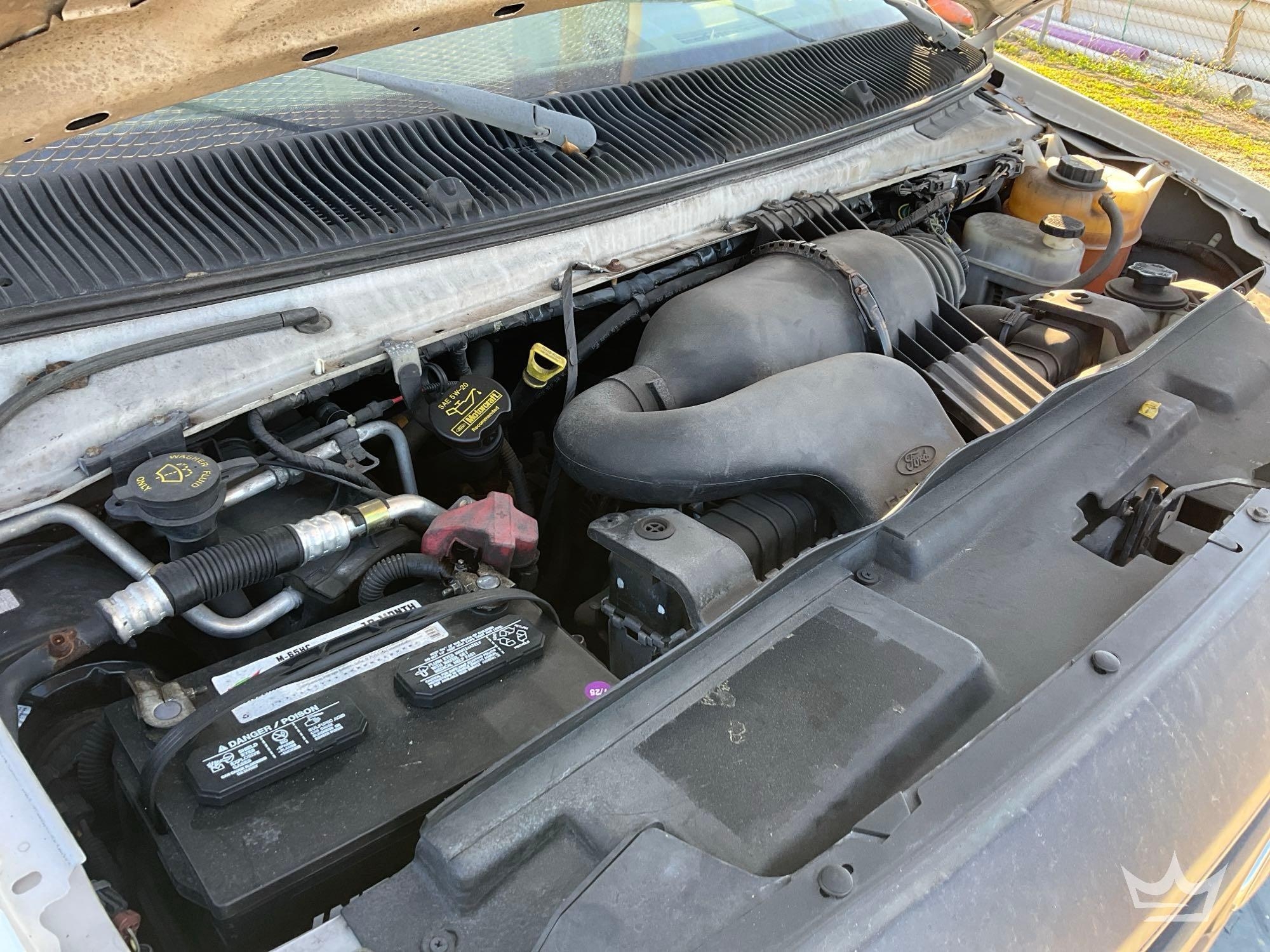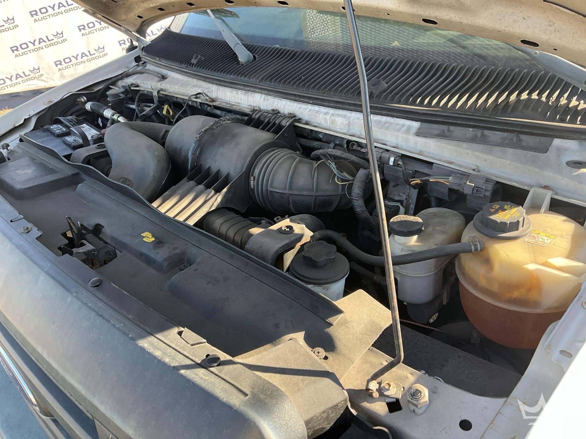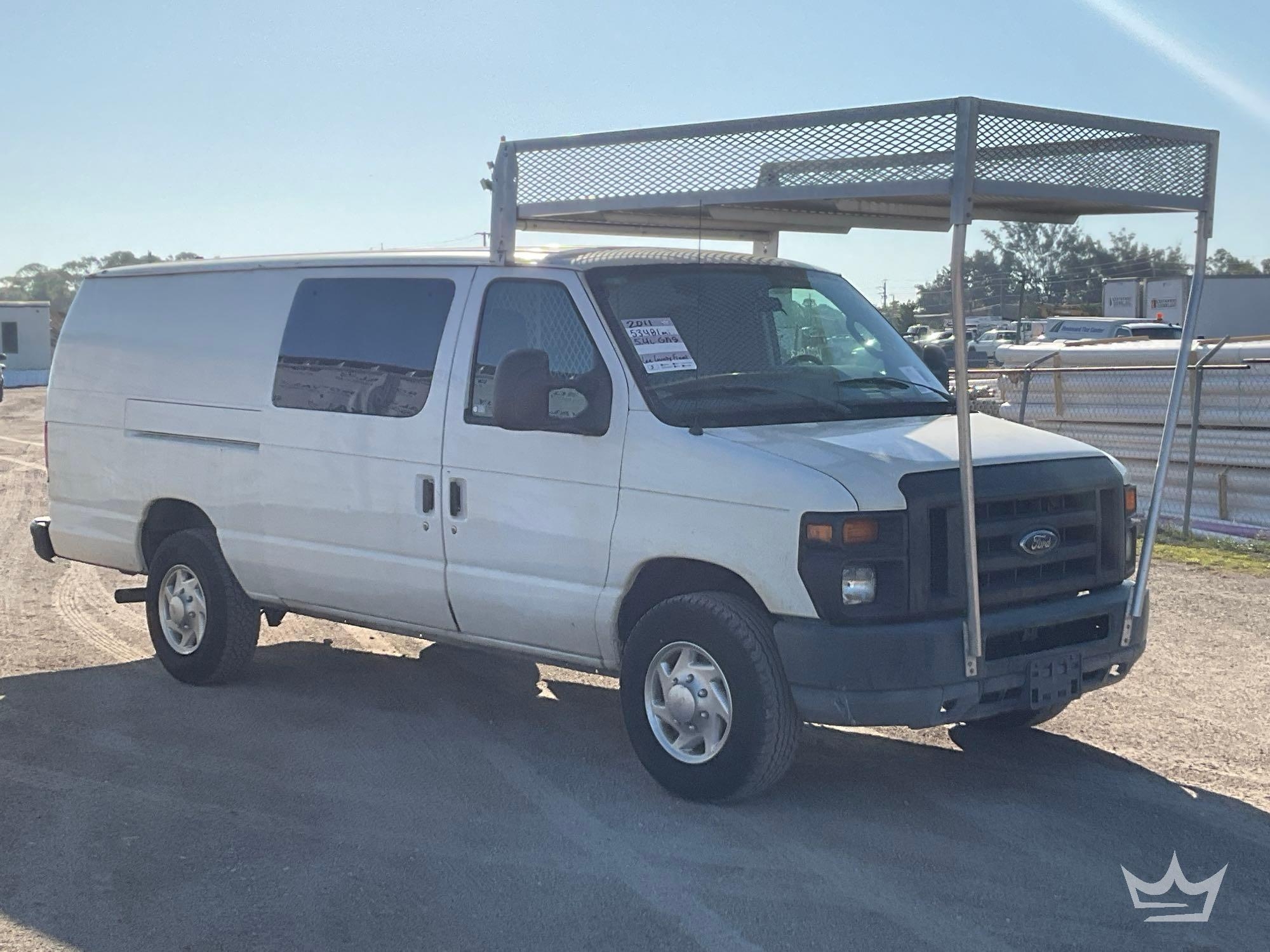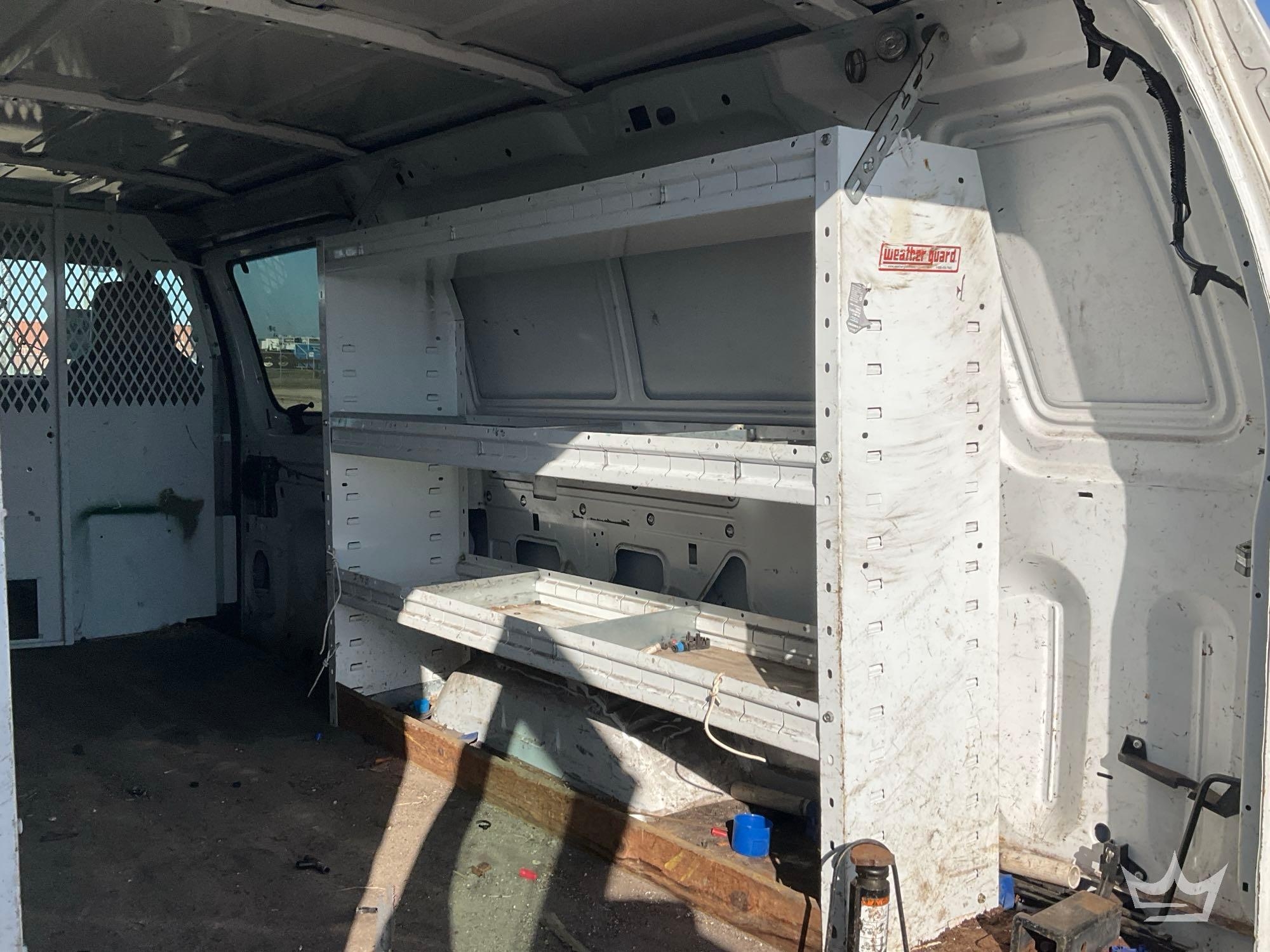 Location Fort Myers, FL. (City of Ft. Lauuderdale) Odom Reads 53,482 miles, pwd by 5.4L V8 gas engine, automatic transmission. Equipped with: Weather Guard shelving and bulkhead partition w/ door, tow package, cargo rack, am/fm stereo, AC/heat, 12V charging ports. Runs and drives. Limited function check completed during check in.