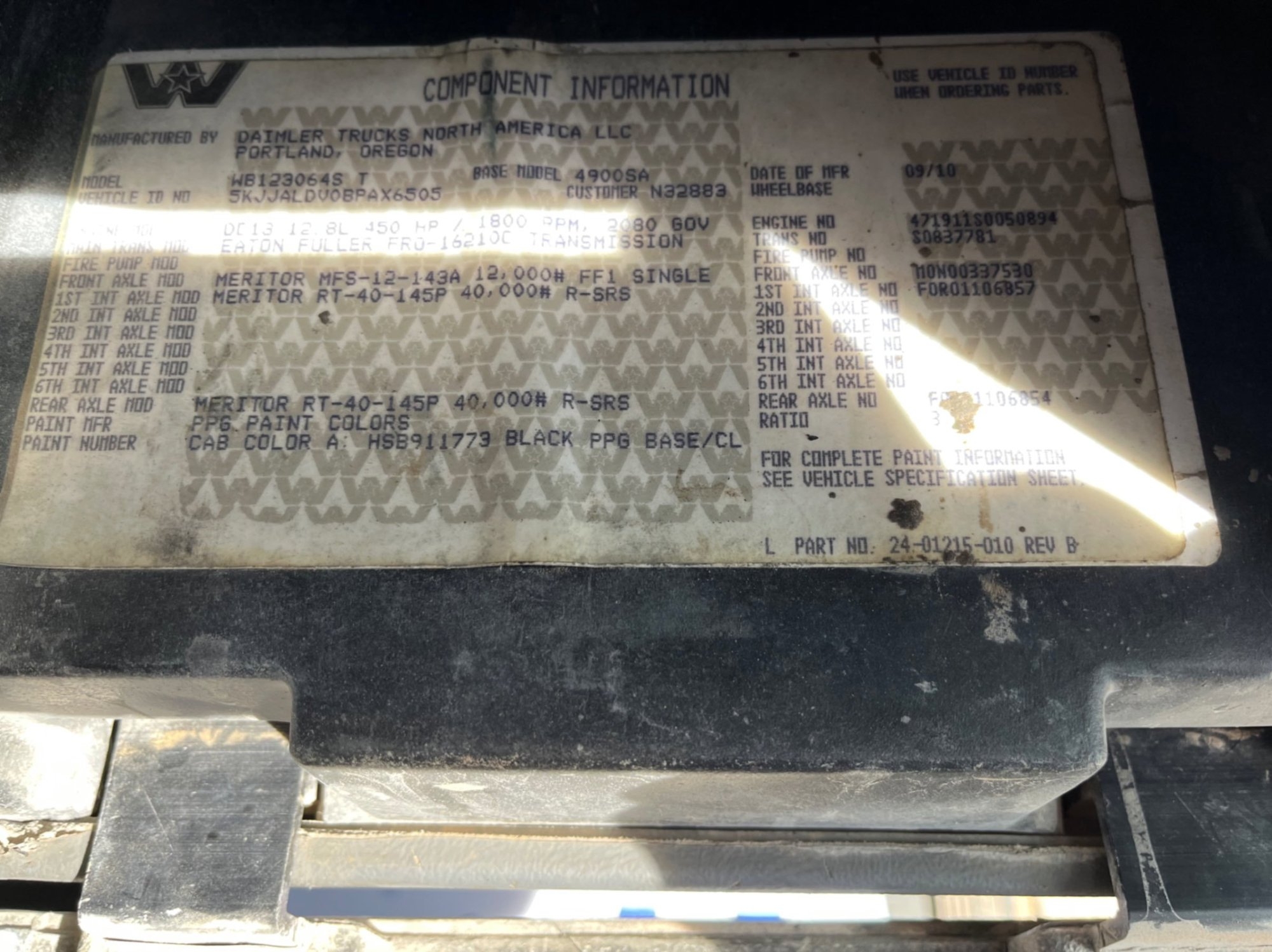 (Cleburne. TX) 2011 WESTERN STAR 4900SA VIN/SN: 5KJJALDV0BPAX6505, GVW:52,350, Engine: DETROIT DD13 450HP, Engine Starts: NO, Odometer Reads: 242,443 Miles, Transmission: EATON FULLER 10SP MANUAL, Suspension: AIR RIDE, 12,000 LB FRONT AXLE (MERITOR MFS-12-143A), 40,000 LB REAR AXLES (MERITOR RT-40-145P), 3.90 RATIO (INOPERABLE) ITEM# 22134