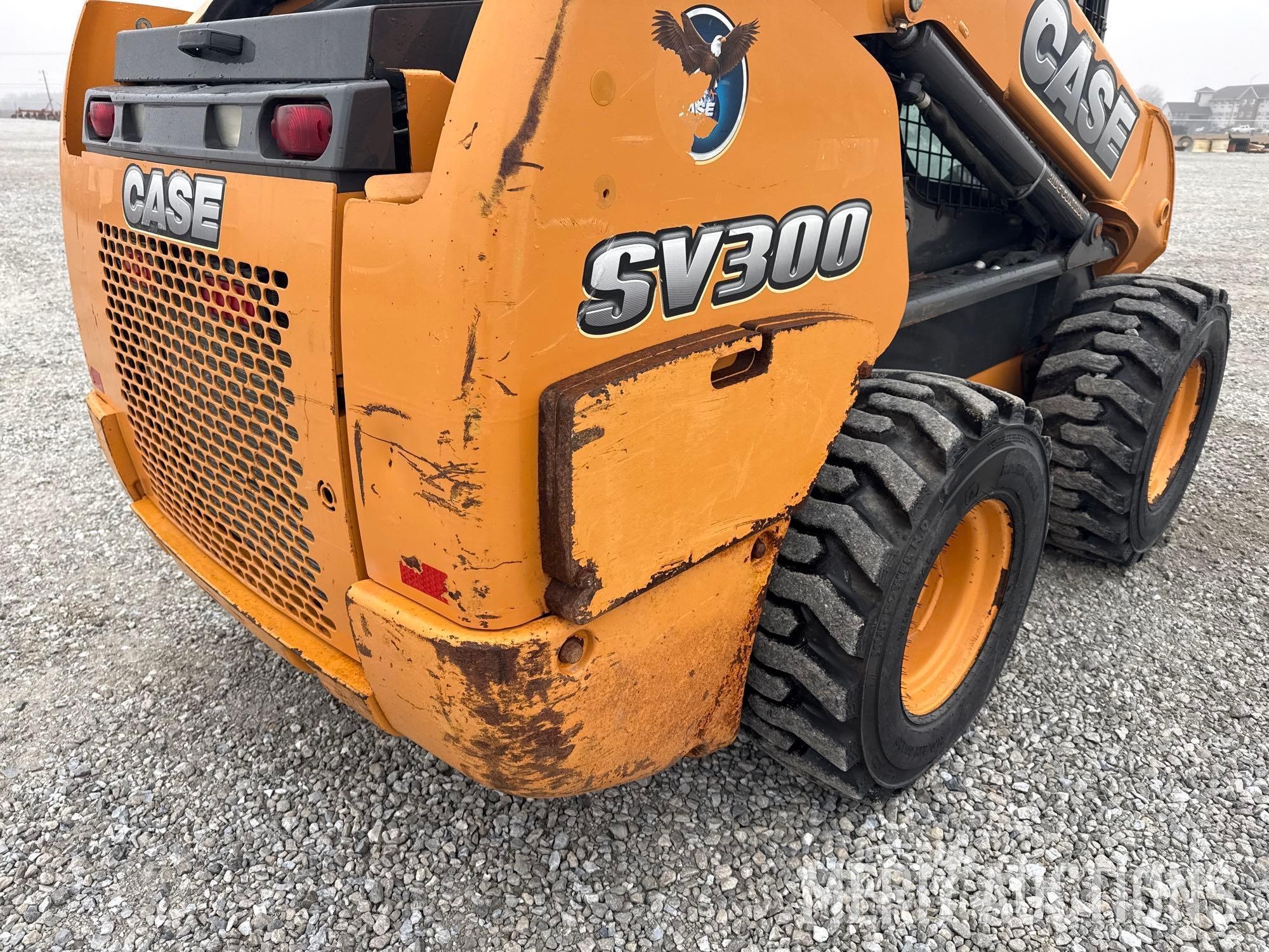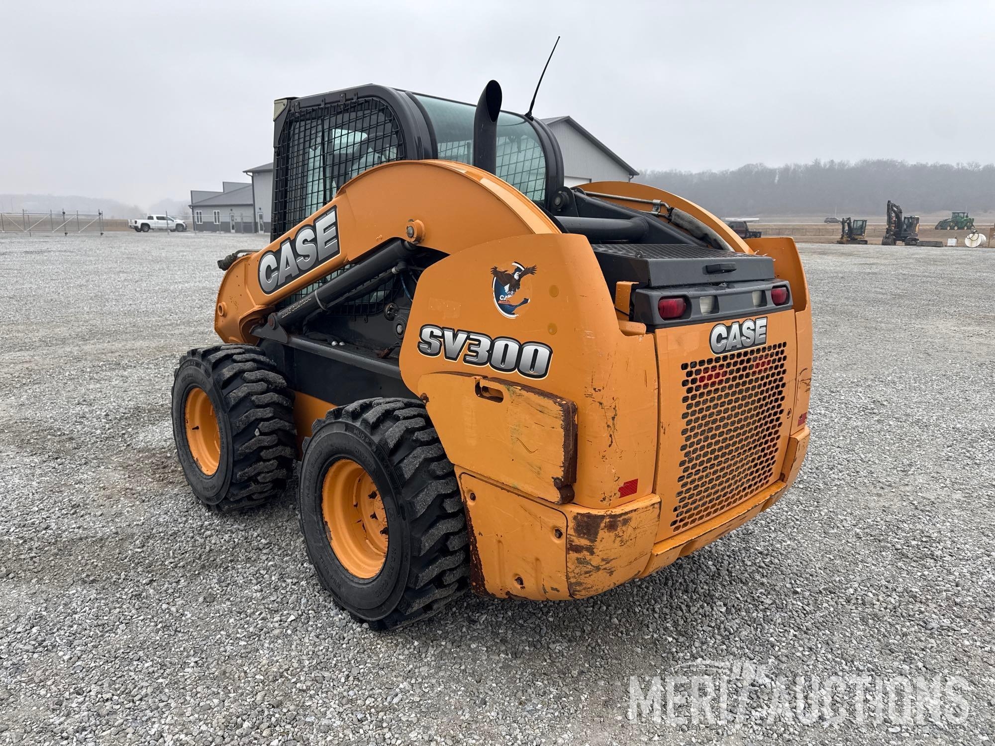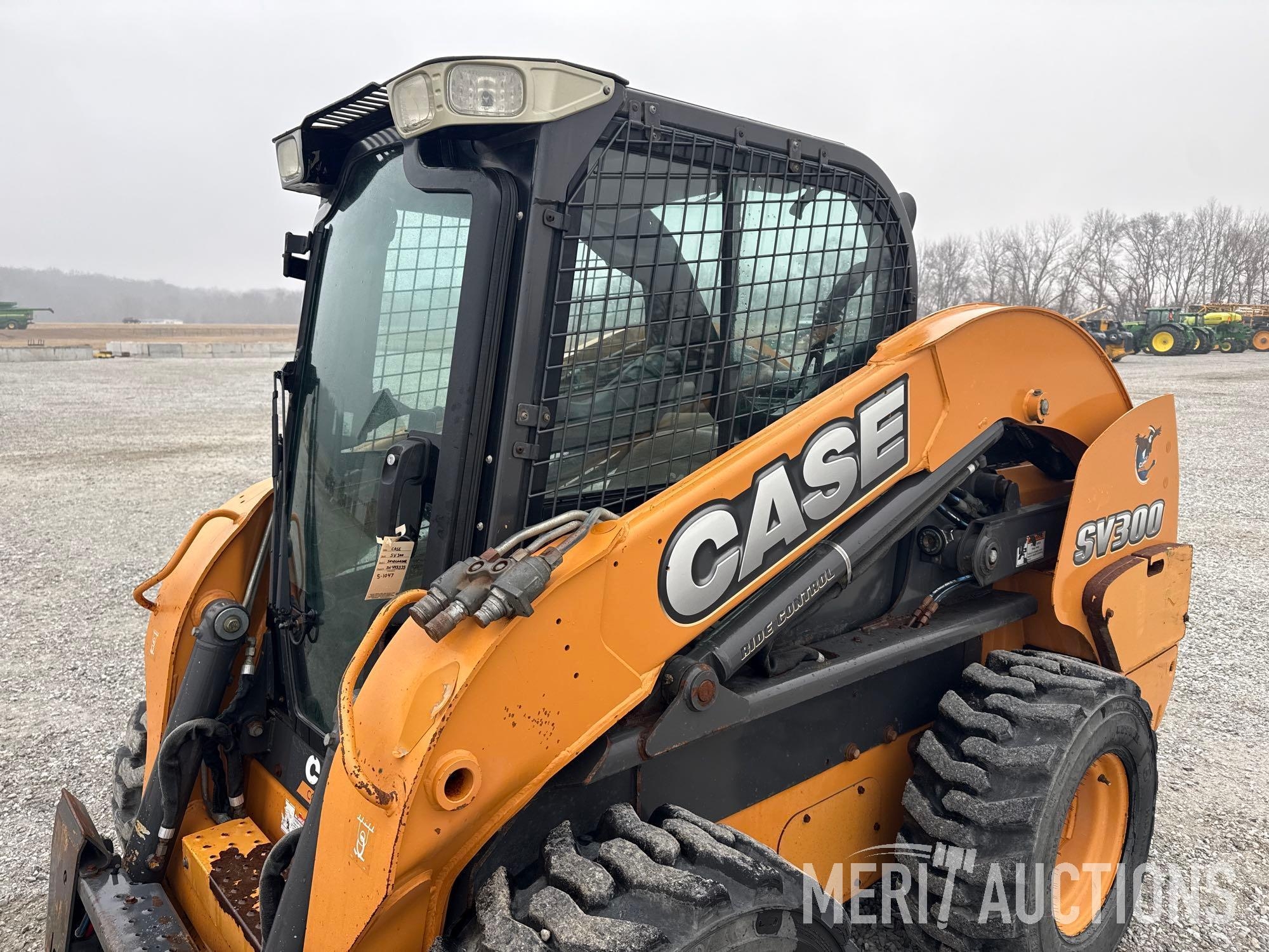 2012 Case SV300 Skid Steer, Hours: 3,591. Cab, Heat, AC, Ride Control, Power Quick Attach, Radio, Matching Tires, Hand Controls, SN: JAFSV300ACM445335. Location: Fort Madison, Iowa