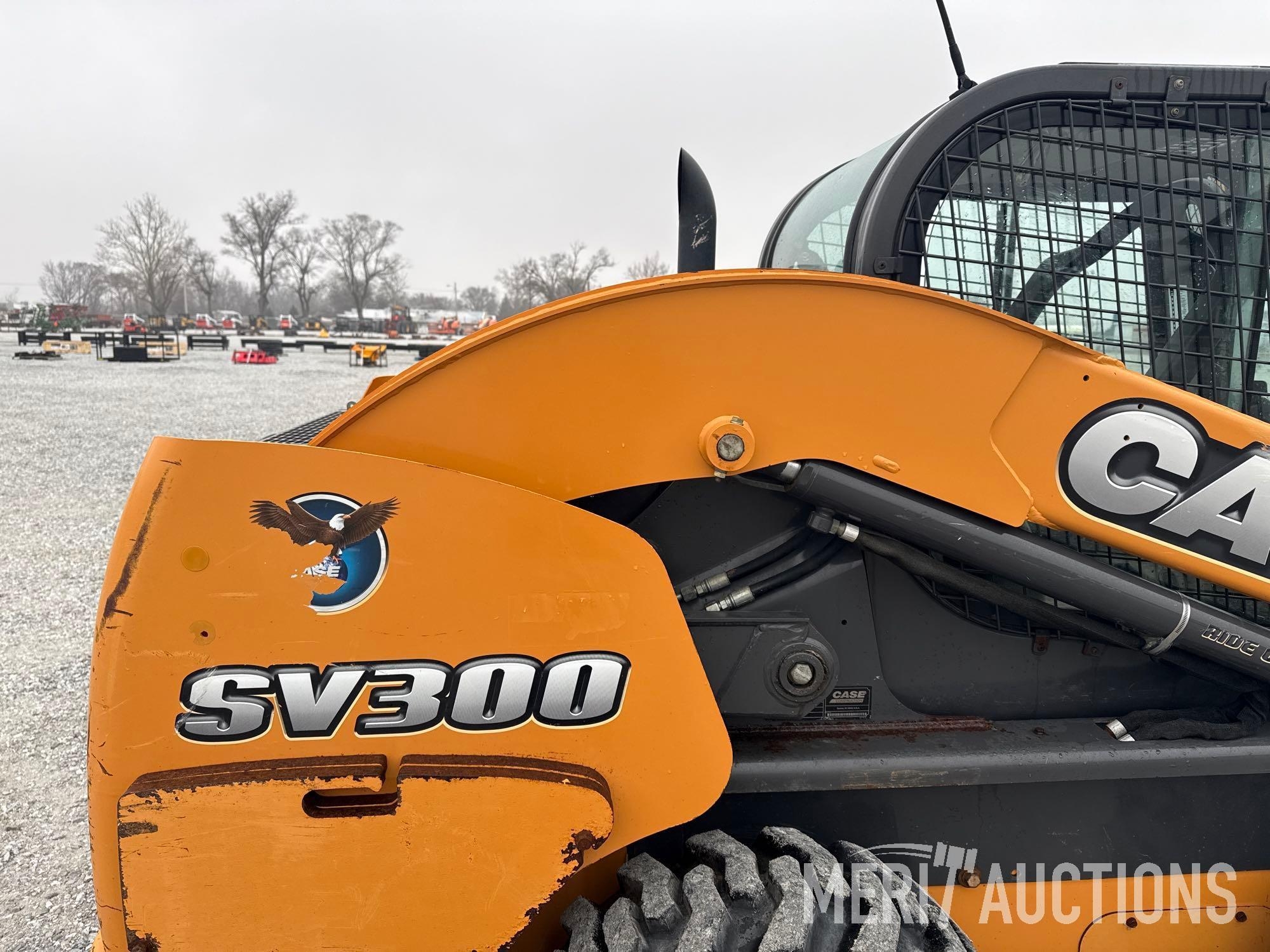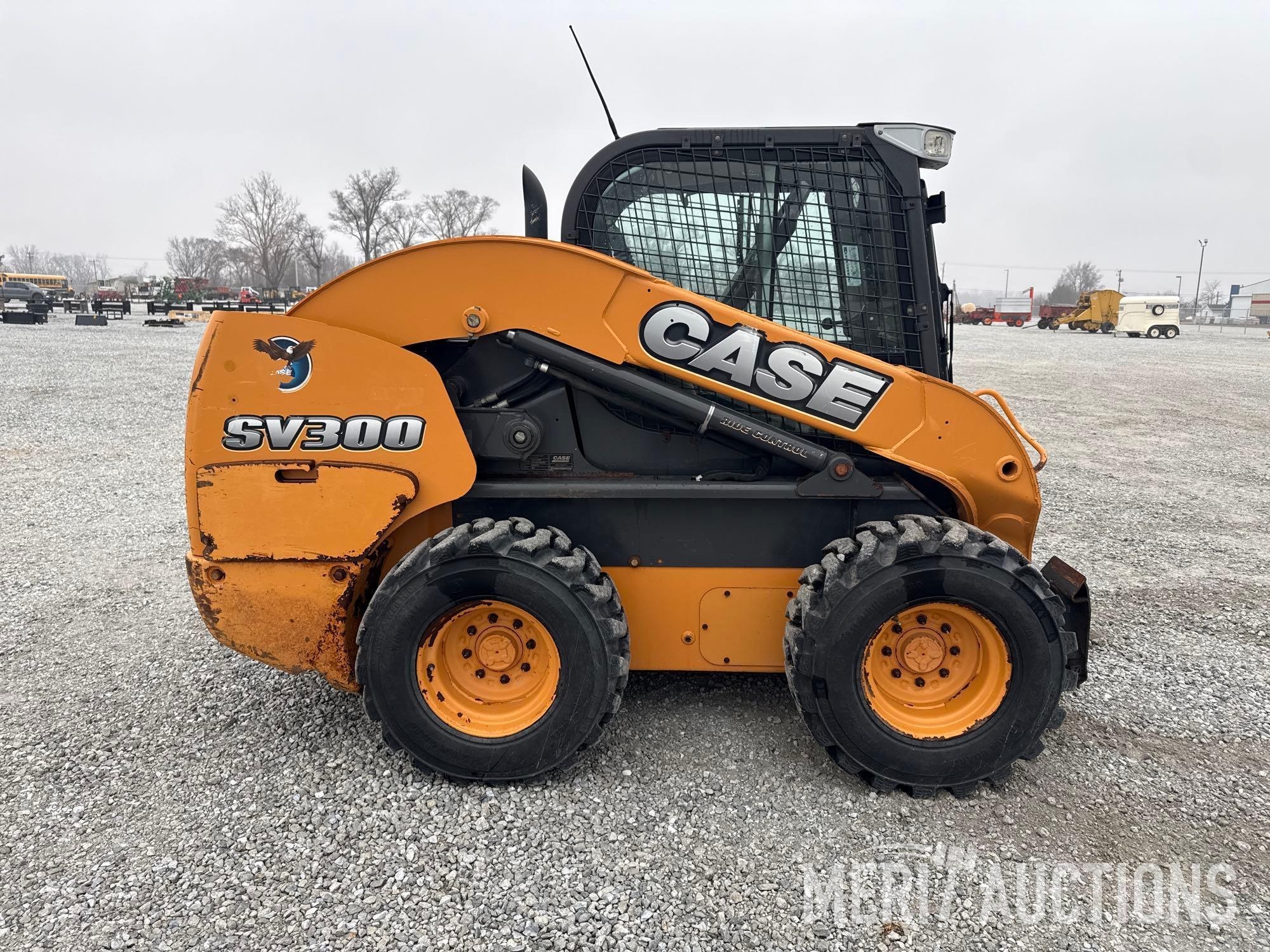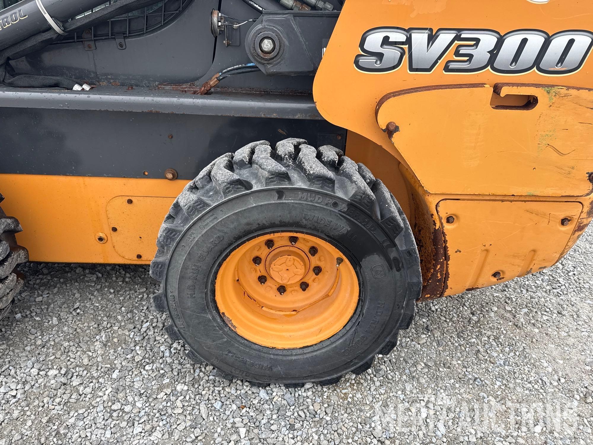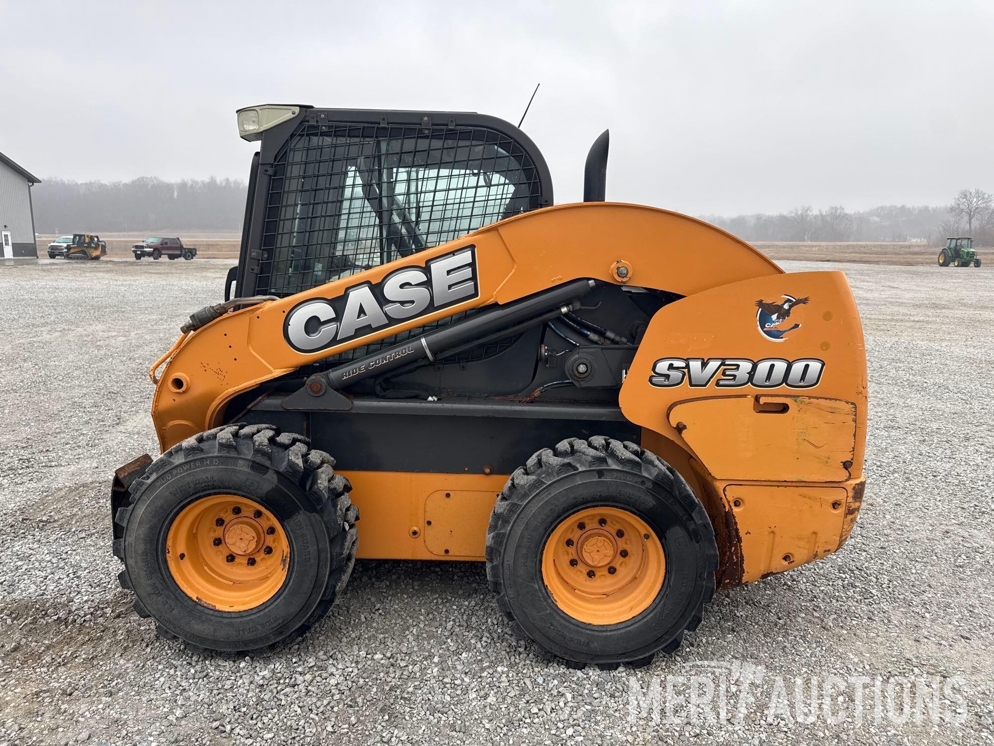 2012 Case SV300 Skid Steer, Hours: 3,591. Cab, Heat, AC, Ride Control, Power Quick Attach, Radio, Matching Tires, Hand Controls, SN: JAFSV300ACM445335. Location: Fort Madison, Iowa