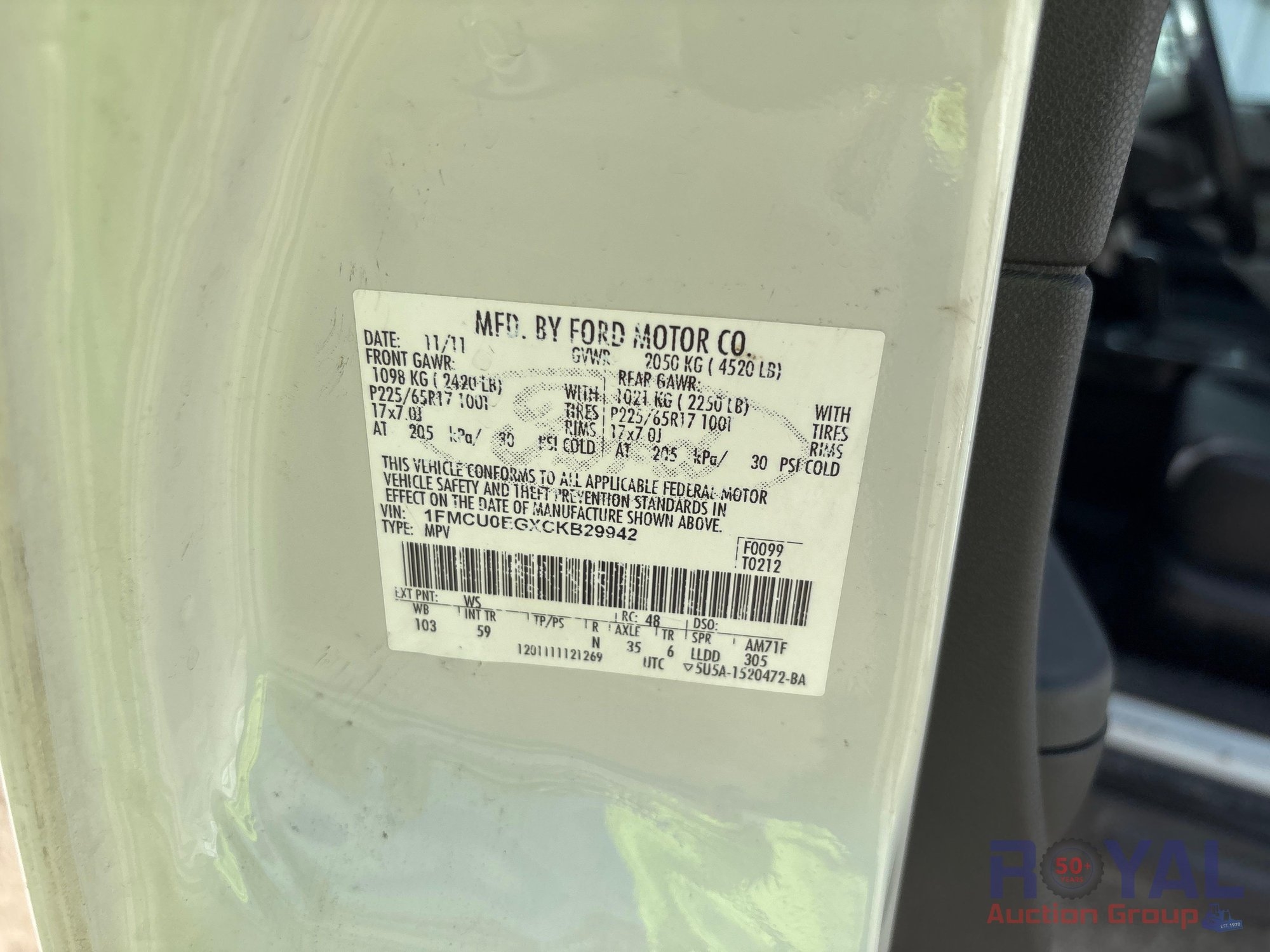 VIN:1FMCU0EGXCKB29942 Odom Reads 169,744 miles, pwd by 3.0L V6 gas engine, automatic transmission. Equipped with: tow package, pwr windows, mirrors and locks, steering wheel cruise, hands free phone system, digital infotainment system w/ bluetooth connectivity and am/fm/cd stereo, AC/heat. Runs and drives. Limited function check completed during check in.
