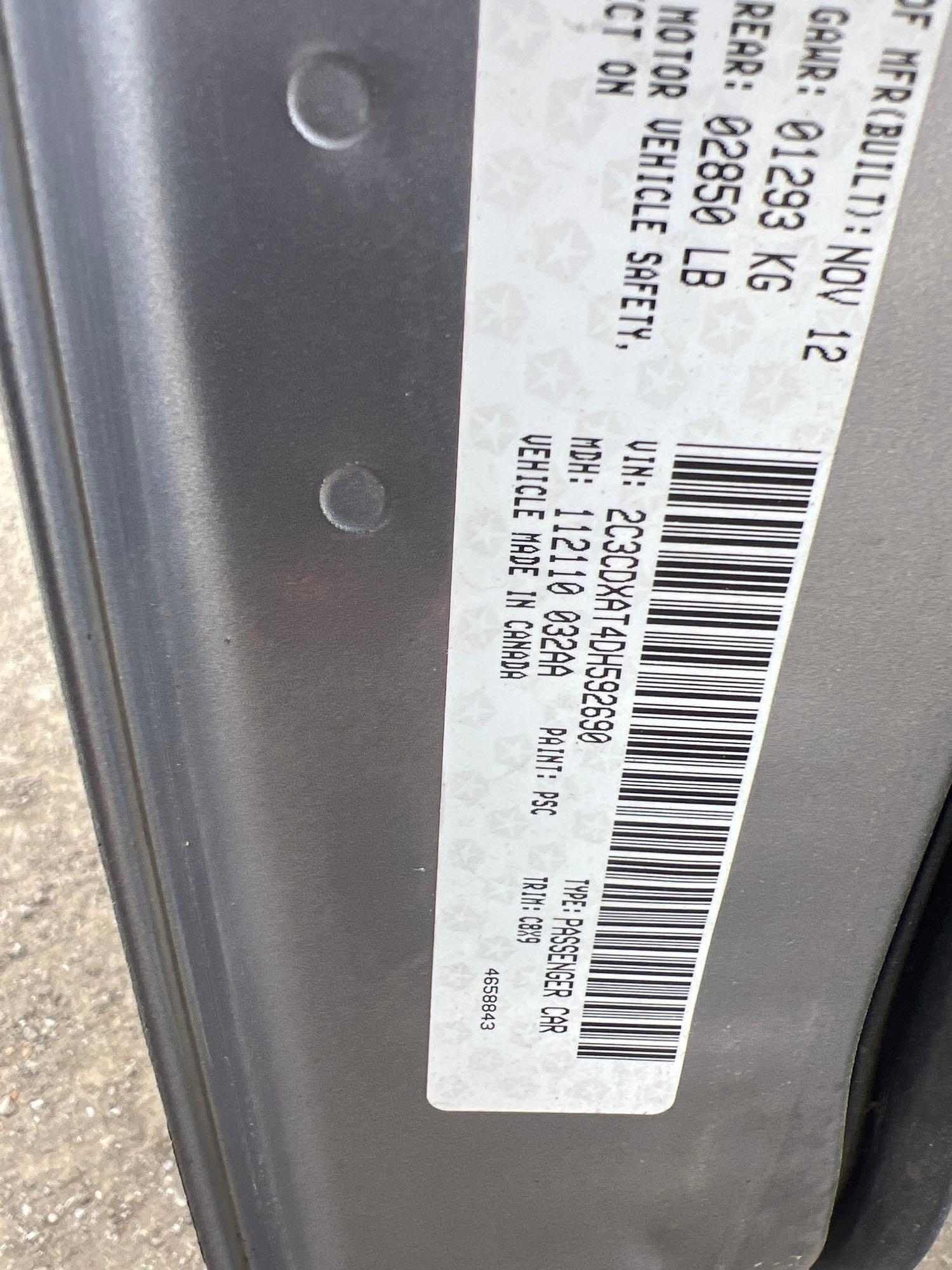 (4) DOOR, AUTOMATIC TRANS, VIN-2C3CDXAJ4DH592690 **RUNS - INTERMITTENTLY SHUTS OFF**