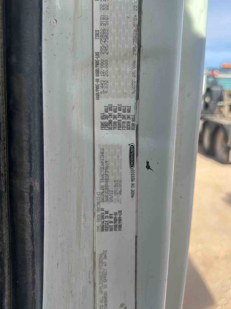 (Odessa. TX) 2013 FREIGHTLINER CASCADIA VIN/SN: 3AKJGBDV4DSFD9609, GVW:46000, ENGINE STARTS: YES, ODOMETER READS: 409111 MILES, DETROIT DIESEL DD13 TRANSMISSION: EATON FULLER 10 SPEED, SUSPENSION: AIR RIDE, STARTS. 12K FRONTS. 40K REARS. INTER AXLE LOCK. FIXED JACK PLATE. ENGINE BRAKE. 11R22.5. A/A ITEM# 21315