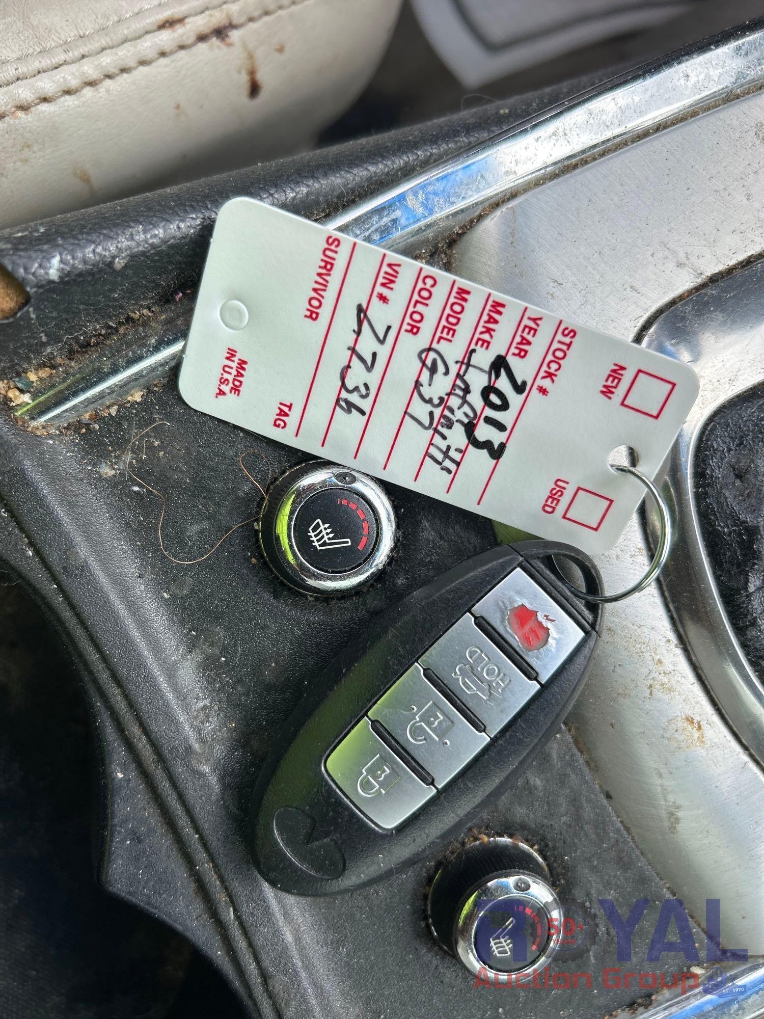 Year: 2013 Make: Infiniti Model: G37 Vehicle Type: Passenger Car Mileage: Plate: Body Type: 2 Door Coupe Trim Level: Base; Sport; Journey Drive Line: RWD Engine Type: V6, 3.7L Fuel Type: Gasoline Horsepower: Transmission: VIN #: Jn1cv6ek7dm923539 Features and Notes: