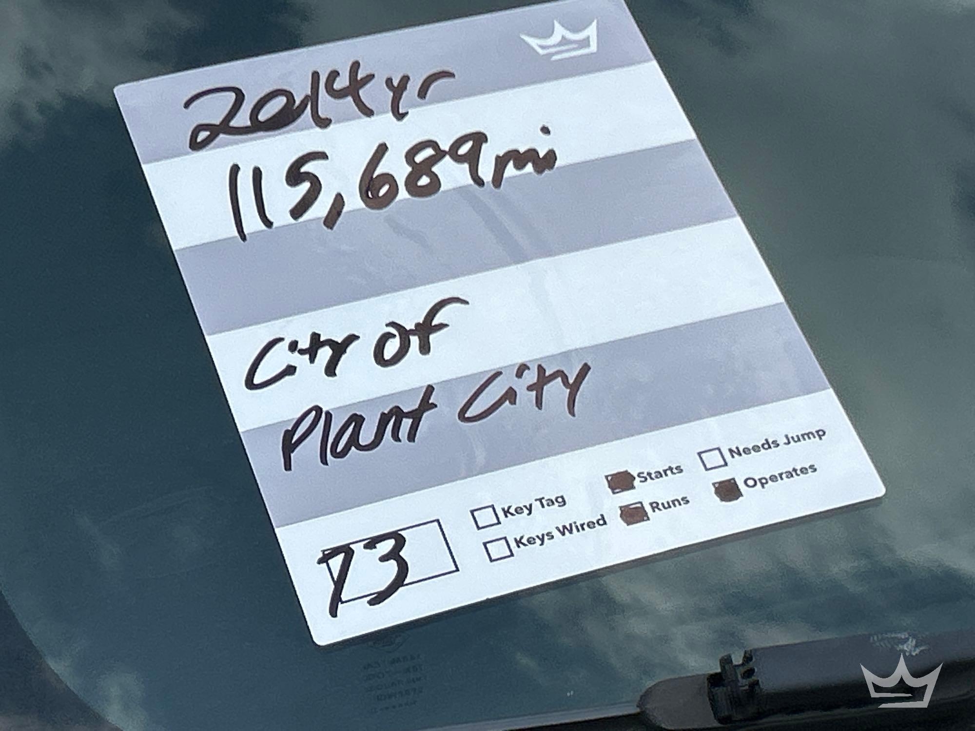 Location Tampa, FL. (City of Plant City); VIN:1FAHP2L89EG159521 Odom Reads 115,689 miles, pwd by 3.5L V6 gas engine, automatic transmission. Equipped with: rear police transport seating, pwr windows, driver seat, mirrors and locks, steering wheel cruise/dash/media controls, digital infotainment system w/ bluetooth connectivity, am/fm radio, cd player, AC/heat, 12V charging ports. Runs and drives. Limited function check completed during check in. Title Brand: Police