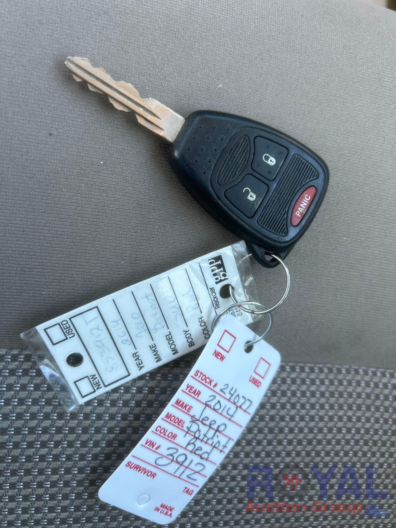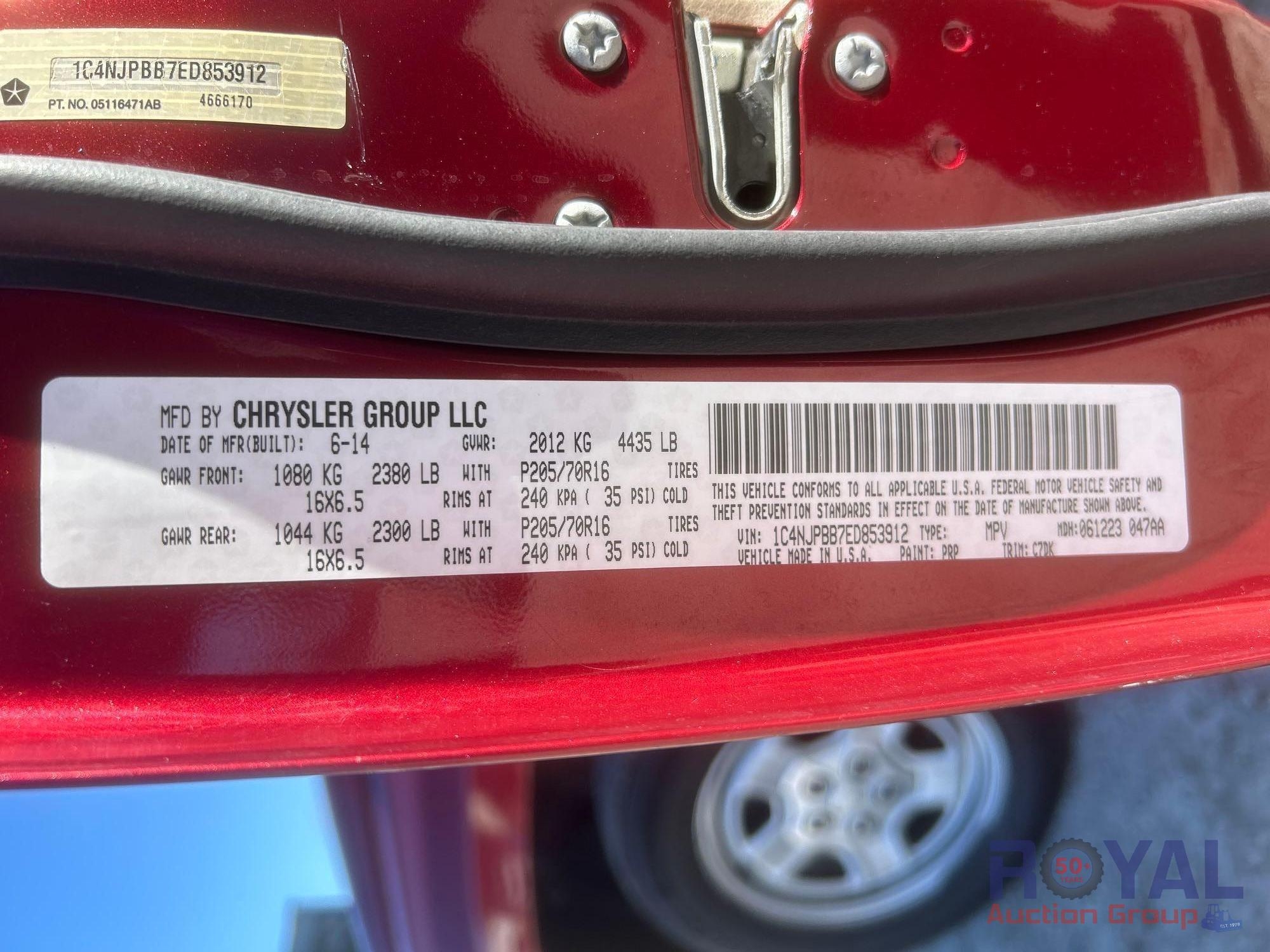 VIN:1C4NJPBB7ED853912, Odom reads: 158,244miles. Powered by a 2.4L 4-cylinder gas engine, automatic transmission. Equipped with: pwr windows, locks, mirrors, steering wheel cruise, control, digital infotainment system, A/C/heat and 12v charger. Runs and drives. Limited function check completed at check in.