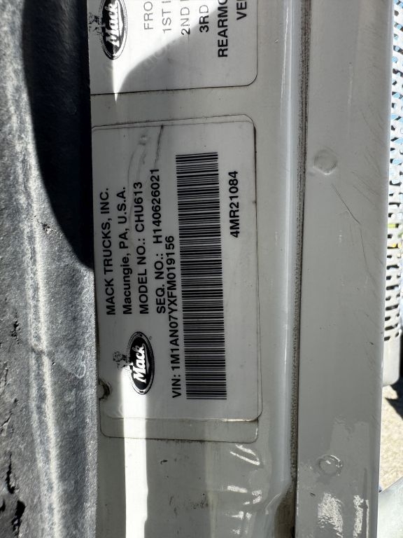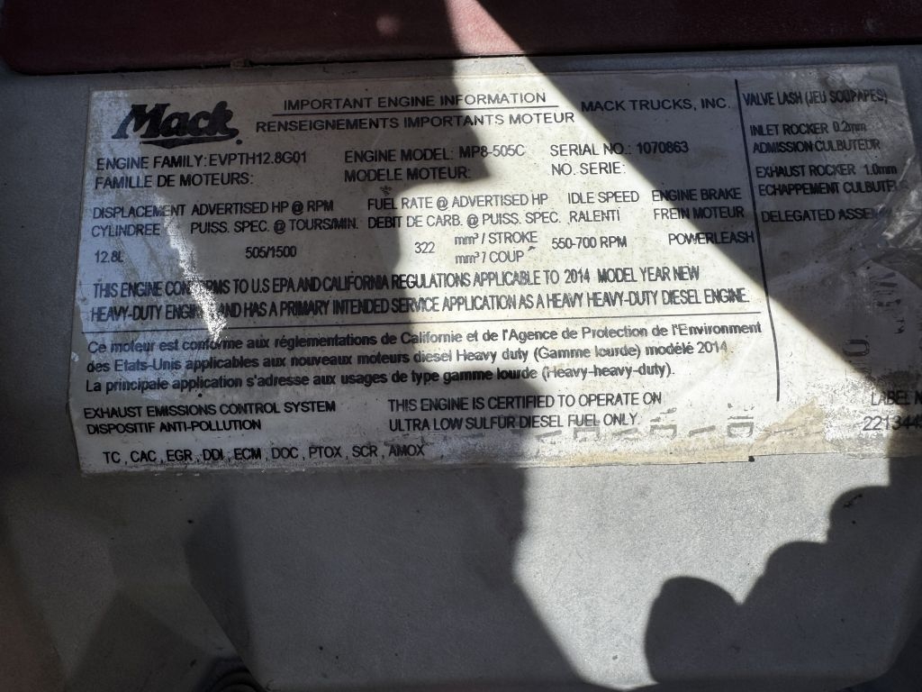 2014 MACK PINNACLE CHU613 VIN# 1M1AN07YXFM019156 - GVWR - 58,320 LBS - 18 SPEED EATON TRANSMISSION - MACK MT8-505C ENGINE - WETLINE KIT INCLUDED - 431,437 MILES