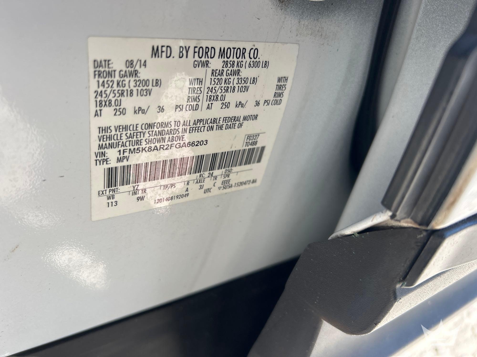 Location: Tampa, FL. (Orange County Sheriff) VIN:1FM5K8AR2FGA66203. Odom reads:109,208 miles. Powered by a 3.7L V6 gas engine with an automatic transmission. Equipped with: all wheel drive/AWD, pwr windows, locks, mirrors and seat, dash screen, rear backup assist camera, handsfree phone connectivity, steering wheel cruise, dash screen, media, and phone controls, am/fm stereo with cd player, digital infotainment system, AC/Heat and 12v charger. Runs and drives, Limited function check was completed at check in. Title Branded Police.