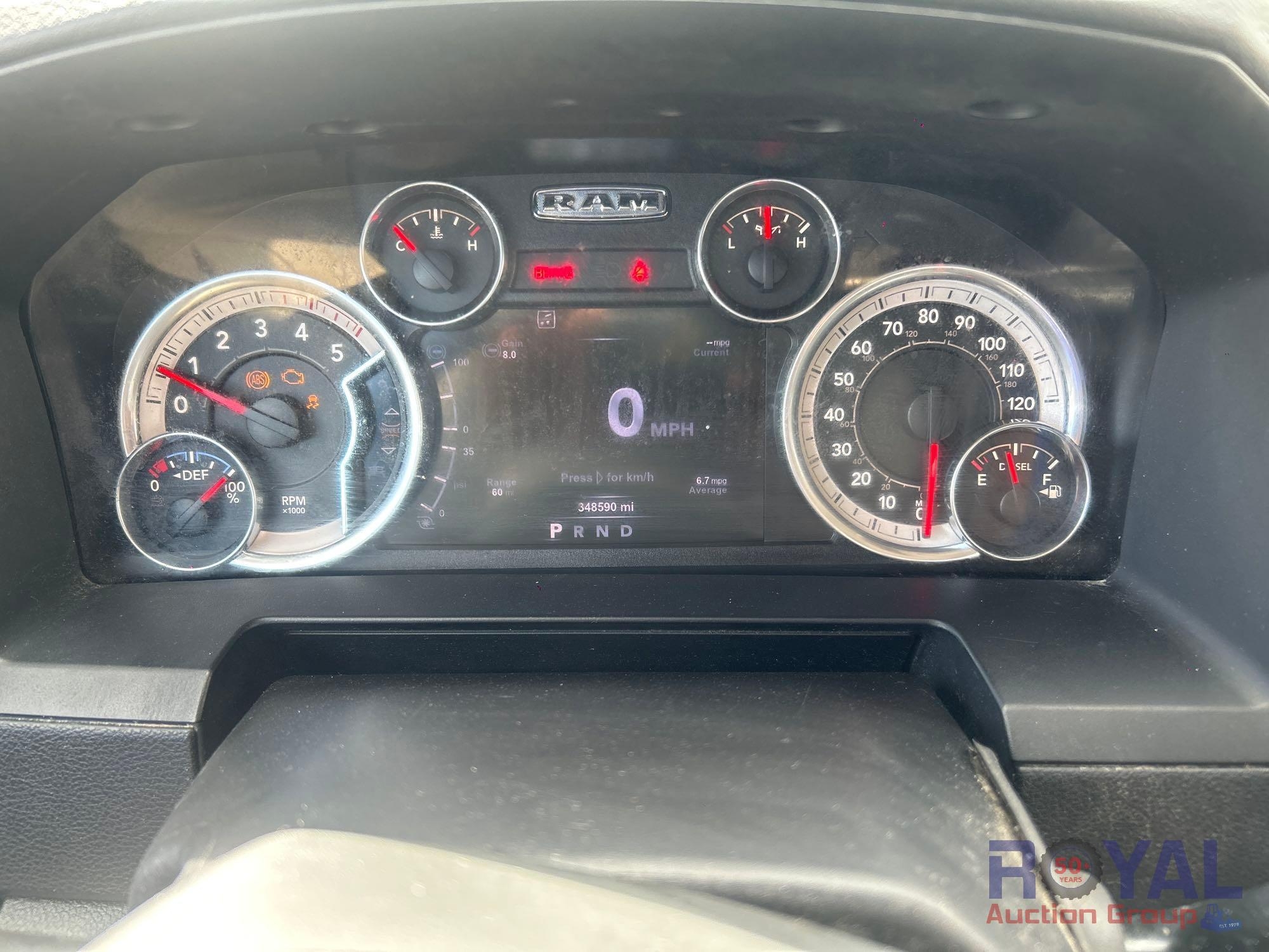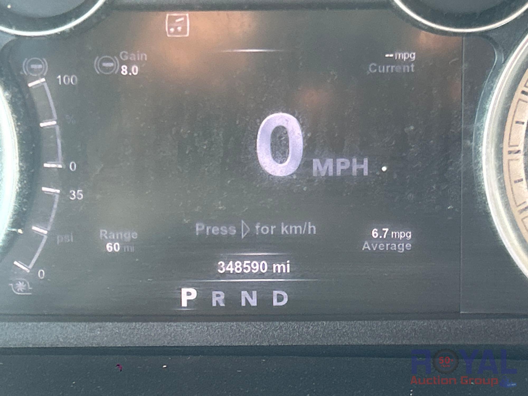 VIN: 3C63RRJL3FG583482 Odom reads 348,590 miles. Pwd. by Cummins 6.7L 6-cylinder turbo diesel engine, automatic transmission. Equipped with four wheel drive, 4WD, tow package, bed liner, running boards, marker lights, gooseneck trailer hitch attachment, pwr. windows, locks, mirrors and seat, dash screen, steering wheel cruise, phone and dash controls, keyless ignition, trailer brakes, digital infotainment system, am/fm stereo, dual zone climate controls, aux switches, leather seats, 12v charger. Runs and drives. Limited function check completed at check in.