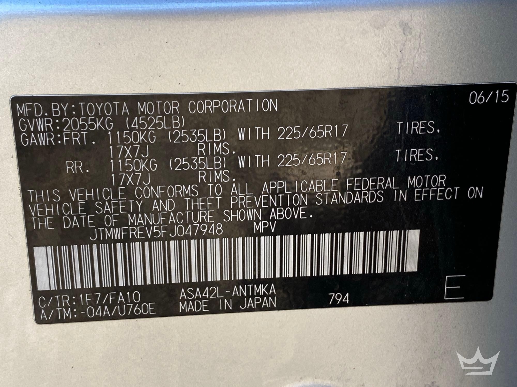 Location: Tampa,FL. VIN:JTMWFREV5FJ047948 . Odom reads: N/A miles. Powered by a 2.5L 4-Cylinder gas engine with an automatic transmission: Equipped with: cruise control, hands-free phone connectivity, steering wheel media and phone controls, am/fm stereo with cd player, digital infotainment system, dual climate control and 12v charger. Non-Runner