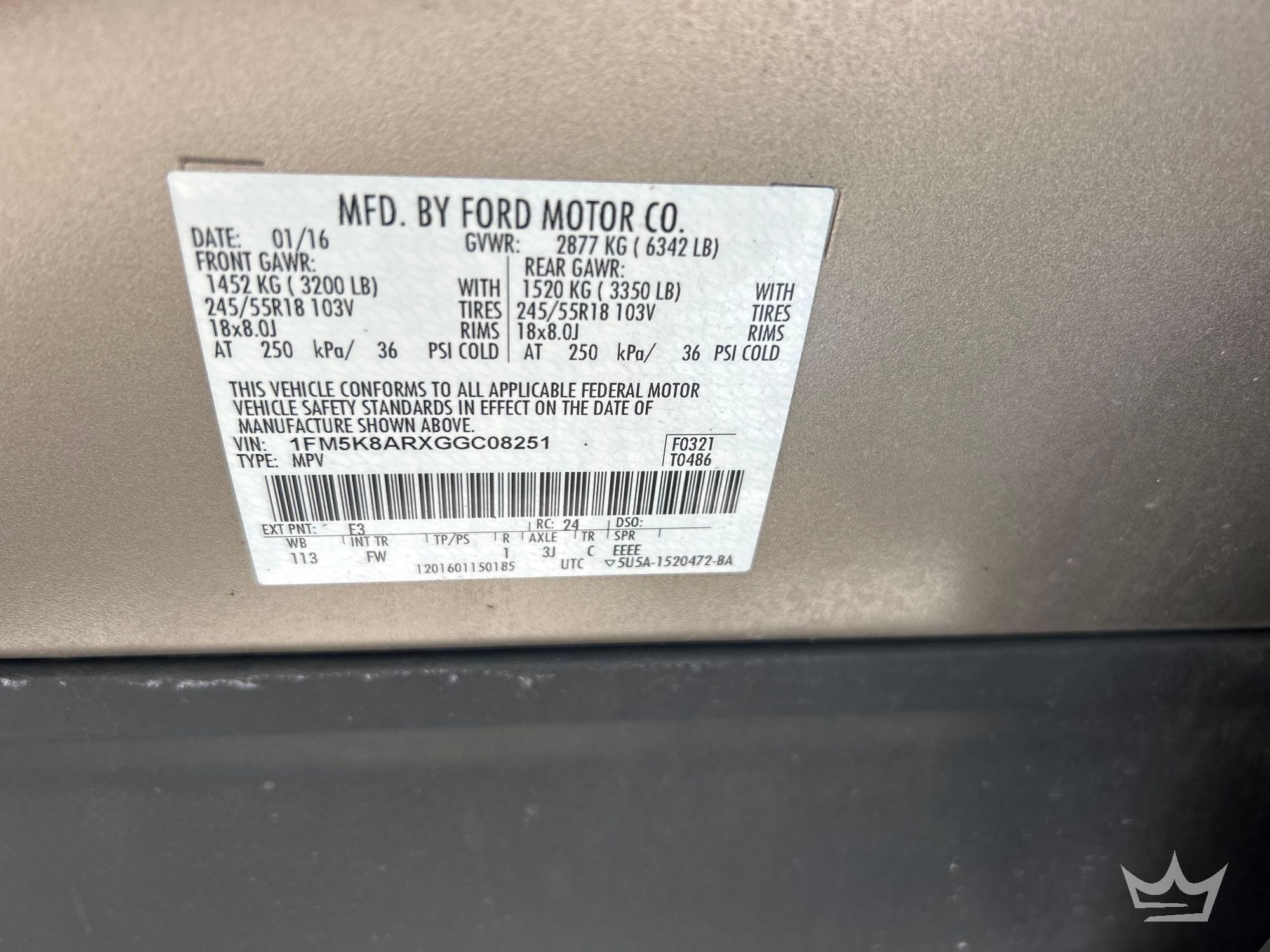 Location: Tampa, FL. (City of Largo) VIN:1FM5K8ARXGGC08251 Odom reads:101,105 miles. Powered by a 3.7L V6 gas engine with an automatic transmission. Equipped with: all wheel drive/AWD, pwr: windows, locks, mirrors and seat, dash screen, hands-free phone connectivity, rear back-up assist camera, steering wheel: cruise, dash screen, media, and phone control, am/fm stereo with cd player, digital infotainment system, AC/Heat, rear climate control, Runs and drives. Limited functions check was completed at check in.