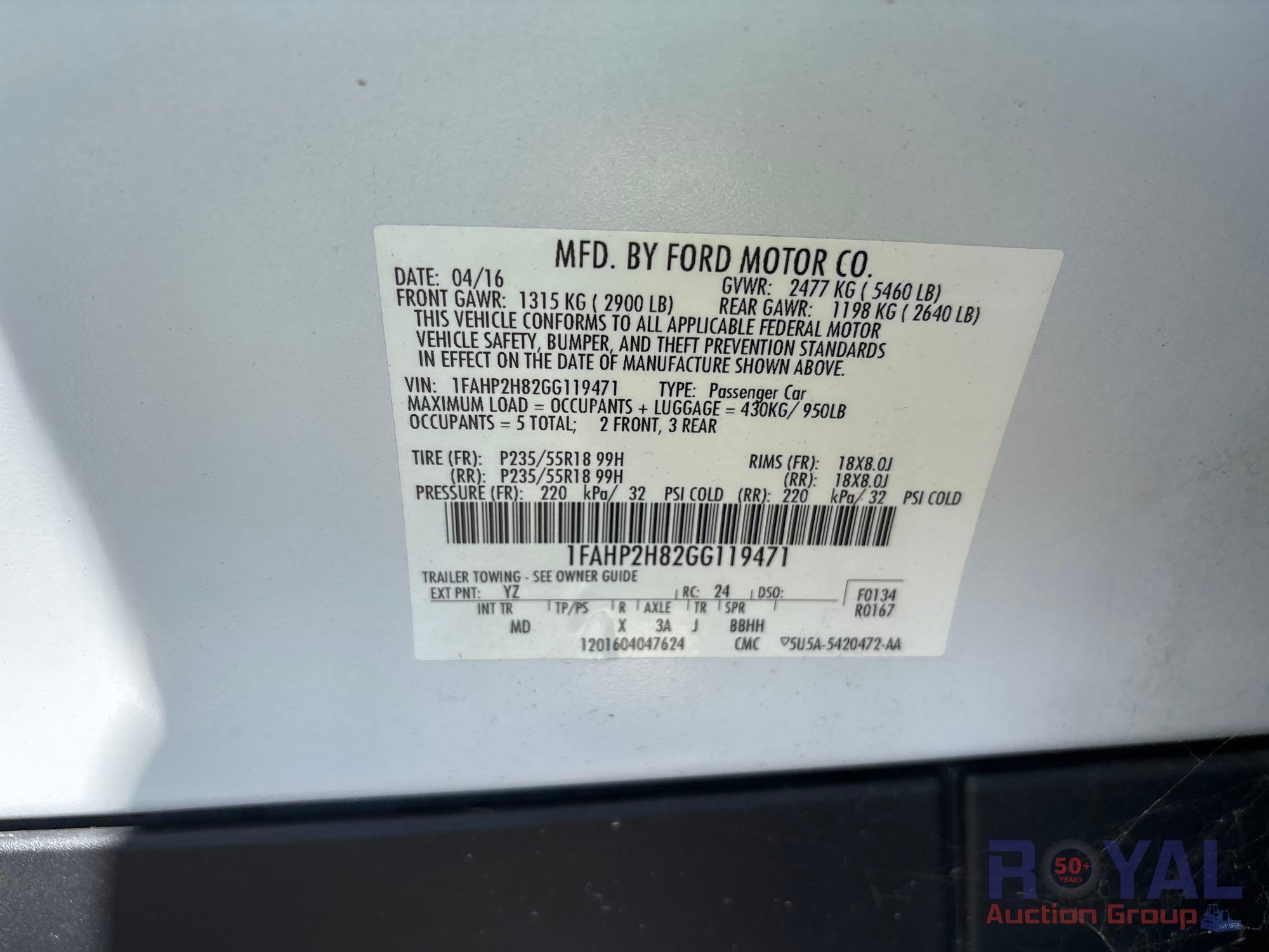 Charlotte County BOCC: VIN:1FAHP2H82GG119471, Odom reads:24,297 miles. Powered by a 3.5L V6 gas engine, automatic transmission. Equipped with: all wheel drive, AWD, pwr windows, locks, mirrors, seat, dash screen, keyless ignition, bluetooth connectivity, steering wheel phone, cruise dash, and media controls, am/fm stereo with cd player, digital infotainment system, dual climate control and 12v charger. Runs and drives. Limited function check completed at check in.