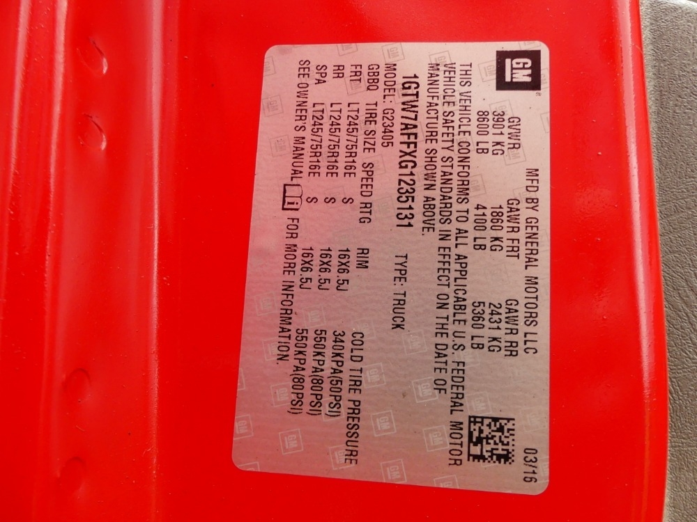 VIN / Serial Number: 1GTW7AFFXG1235131