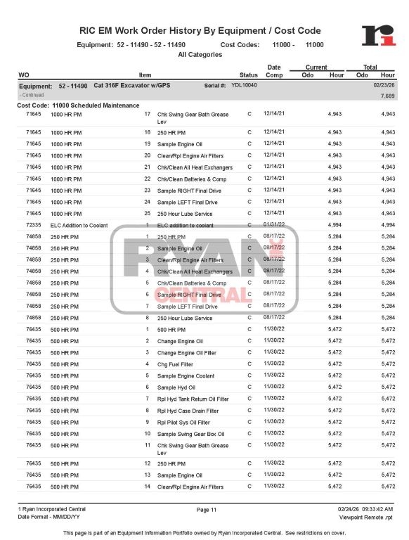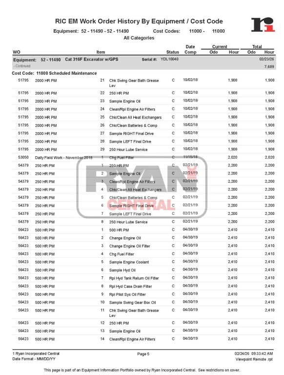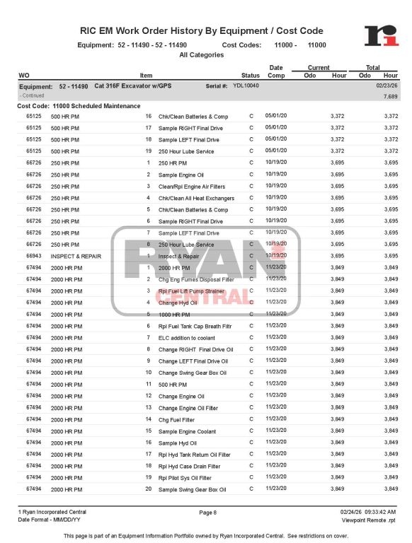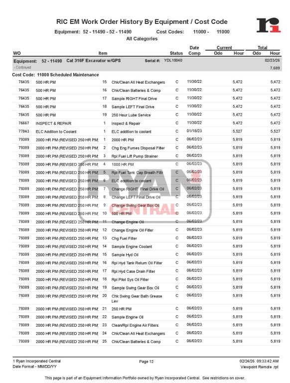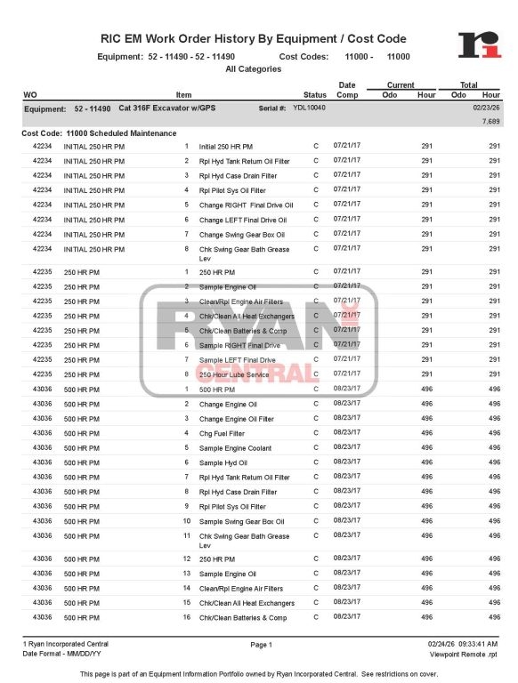 2017 Cat 316FL s/n YDL10040 7690 hrs Key Options: EROPS, premium cab, air-suspension seat w/ heat, rearview camera, ARO/GPS-ready, aux hydraulics, 10’2” stick, Cat coupler, GP bucket