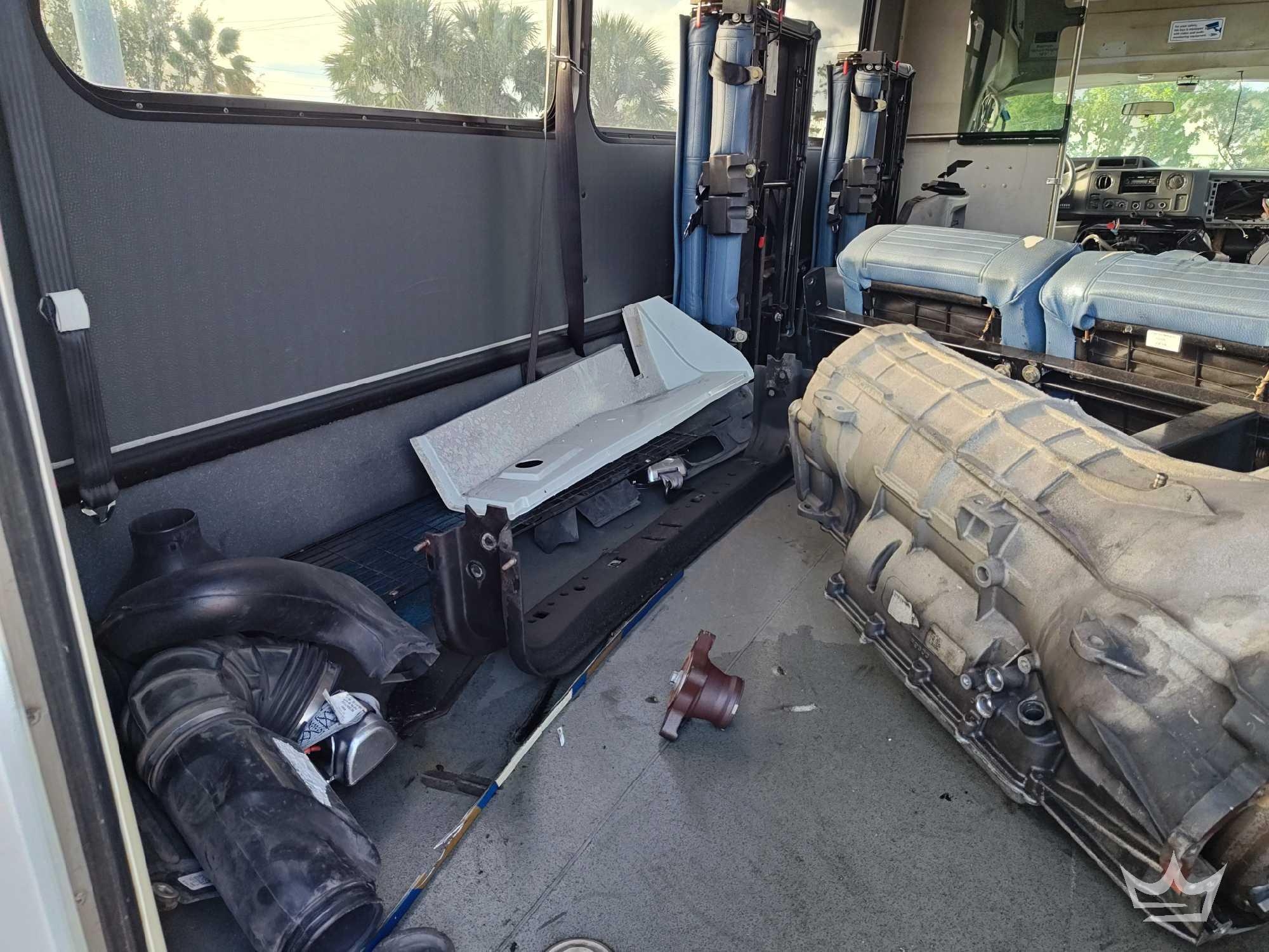 Lee County Transit Authority (229) VIN: 1FDFE4FS4HDC58436 Odom read N/A (last known mileage 265,001 miles.) Pwd by 6.8L V10 gas engine, automatic transmission. GVWR 14,500lbs, GAWR front 5,000lbs, and GAWR rear 9,600lbs, 14 passenger seating capacity, emergency exits, ADA liftgate, steering wheel cruise, am/fm stereo, heat and a/c. Visible parts missing. Non- Runner.