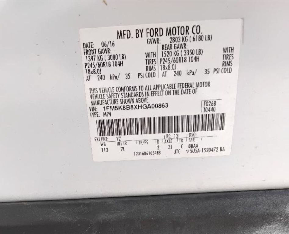 2017 Ford Explorer 4x4, Cloth, Power Seats 119,555 Miles Vin# 1FM5K8B8XHGA00863