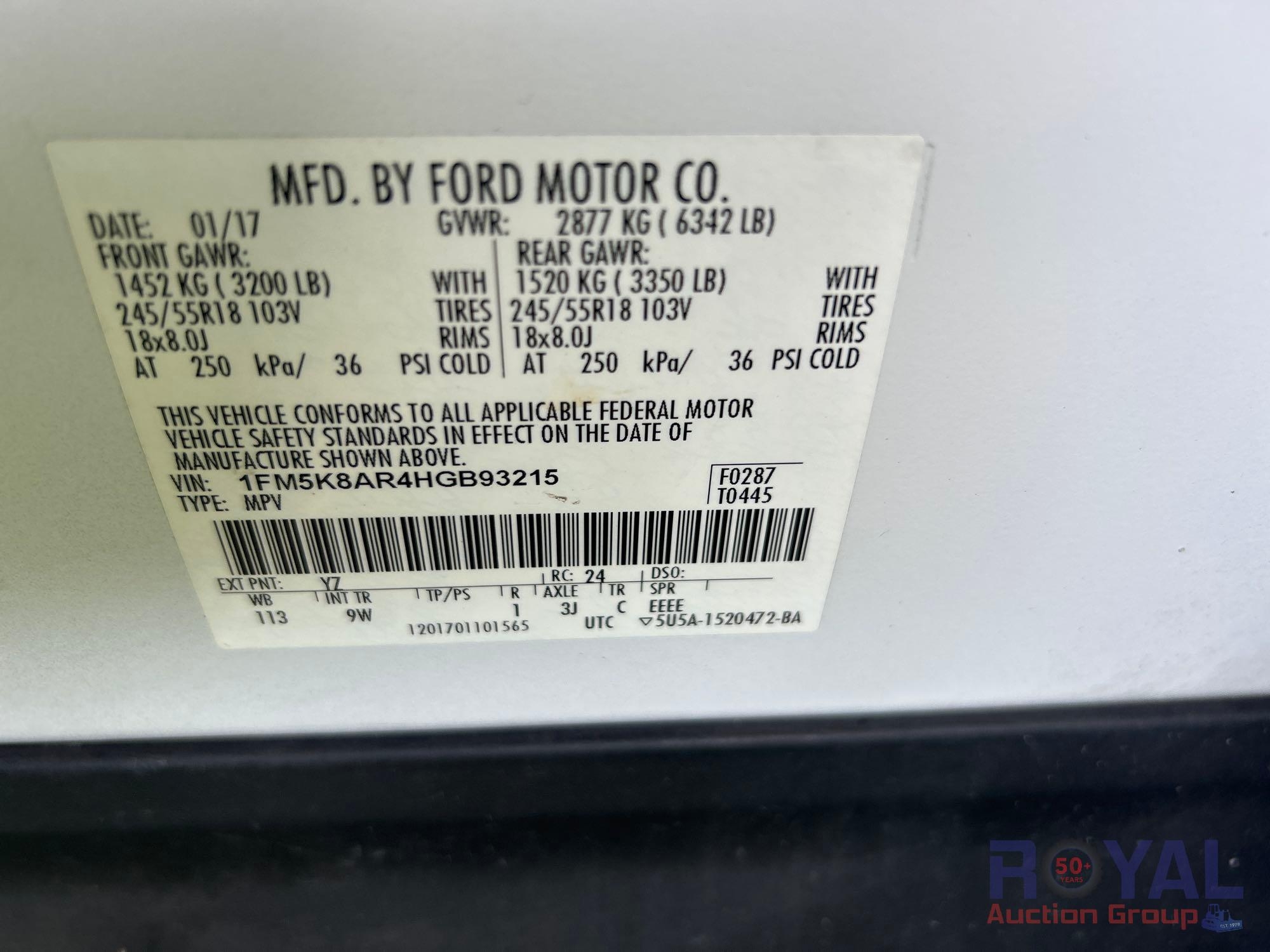 City of Clearwater (G4380) VIN: 1FM5K8AR4HGB93215 Odom Reads: 111,714 Miles. Pwd by 3.7L V6 gasoline engine, Automatic transmission, Equipped with AWD/All Wheel Drive, tow package, pwd seats, windows, locks, and mirrors, steering wheel cruise controls and hands free capabilities, Bluetooth compatible AM/FM stereo with CD player, Jotto Desk Center Console, rear view camera, rear climate controls, heat and A/C, Runs and Drives. Limited Function Check Completed At Check In. Title Branded: Police