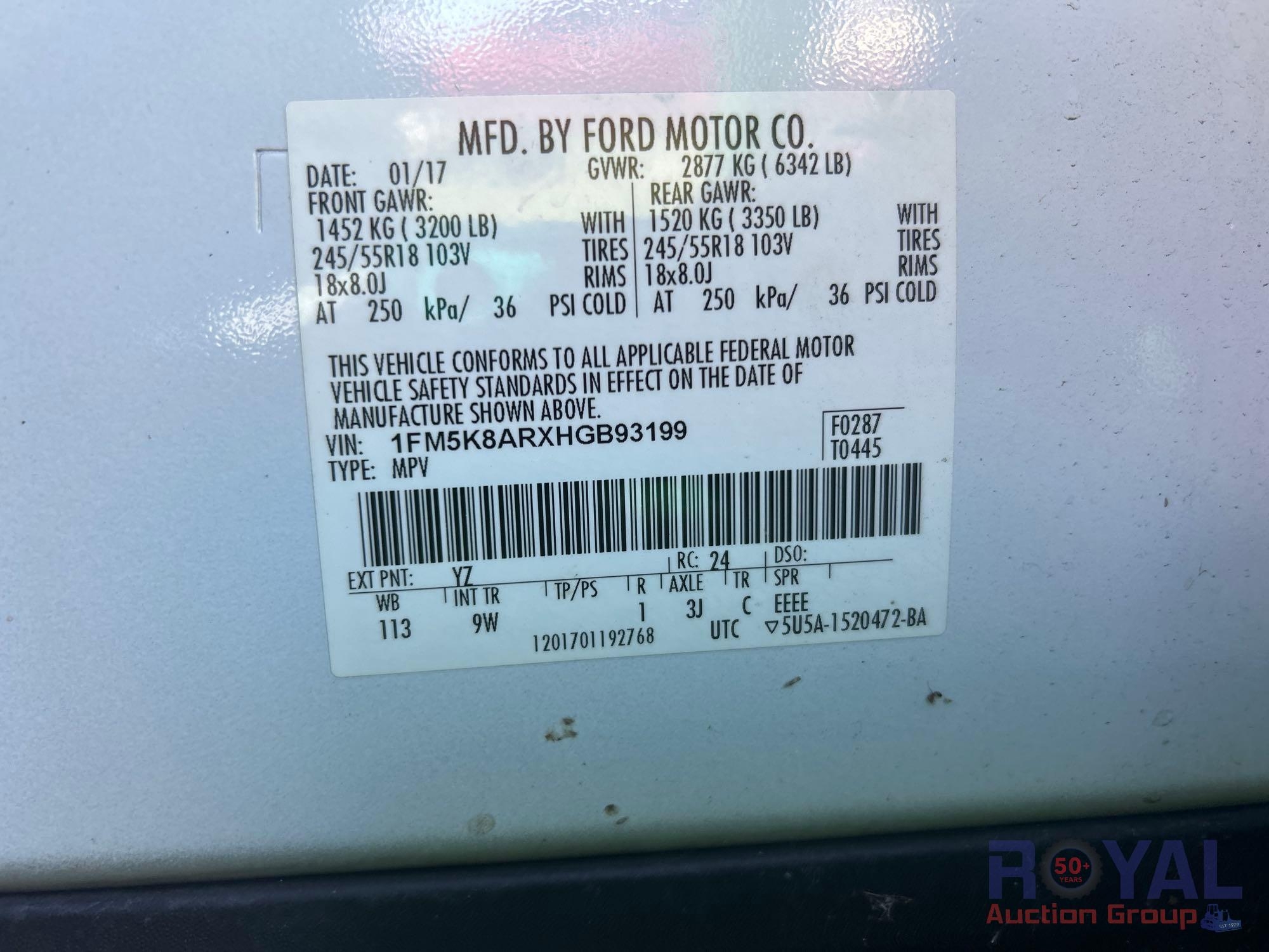 City of Clearwater (G4402), VIN: 1FM5K8ARXHGB93199, Odom reads: Unreadable. Powered by a 3.7L V6 gas engine, automatic transmission. Equipped with: all wheel drive, AWD, pwr windows, locks, and mirrors, steering wheel controls, AC/heat, am/fm stereo. Non-Runner.