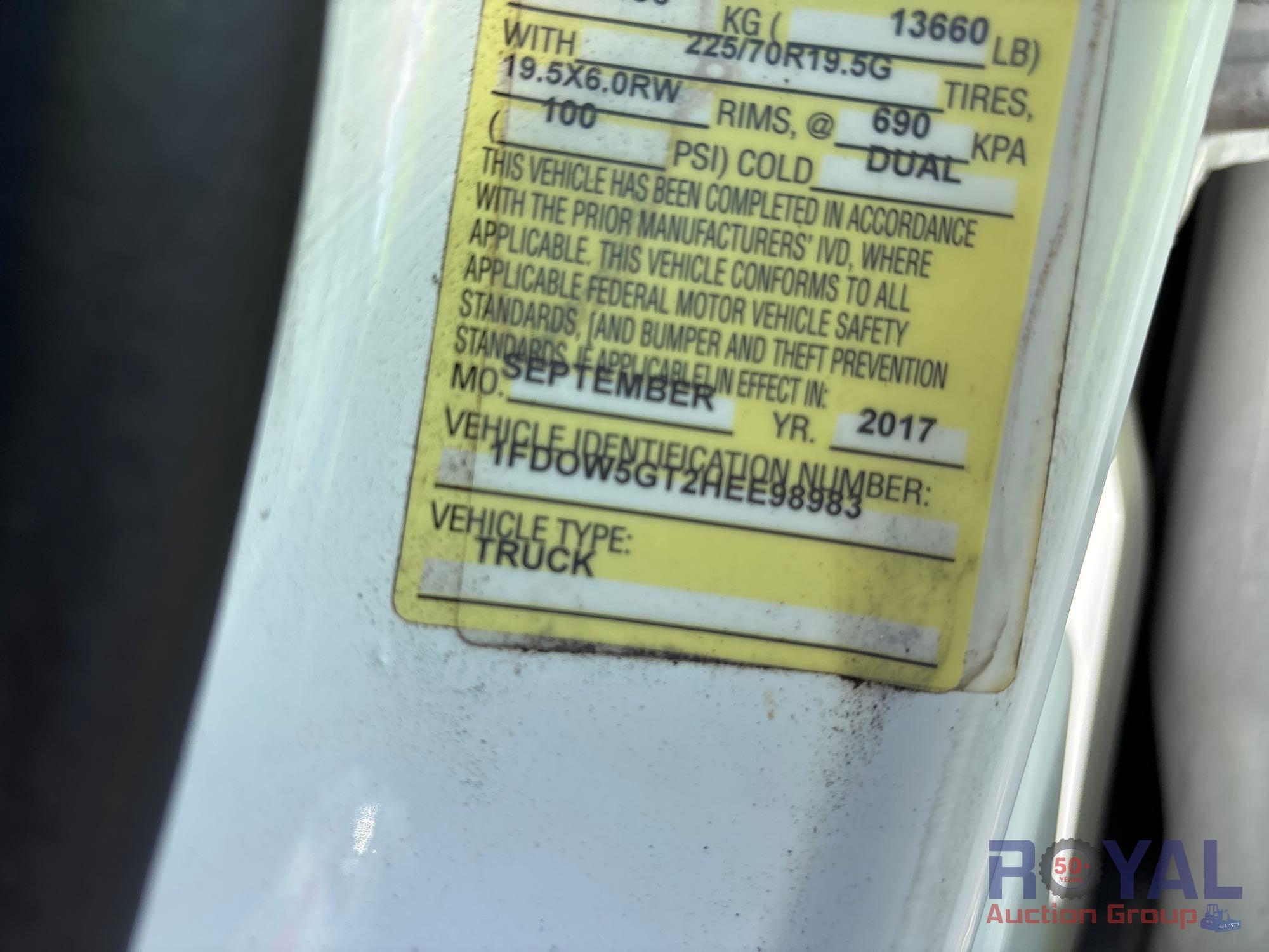 City of Fort Lauderdale (10470); VIN:1FD0W5GT2HEE98983 Odom Reads 50,519 miles, pwd by Powerstroke 6.7L V8 turbo diesel engine, automatic transmission. Equipped with: KUV enclosed service body w/ interior and exterior cargo compartments, Tommy Gate hydraulic liftgate, 4x2 drive line, dual rear wheels, crew cab, running boards, am/fm radio, AC/heat. Runs and drives. Limited function check completed during check in.