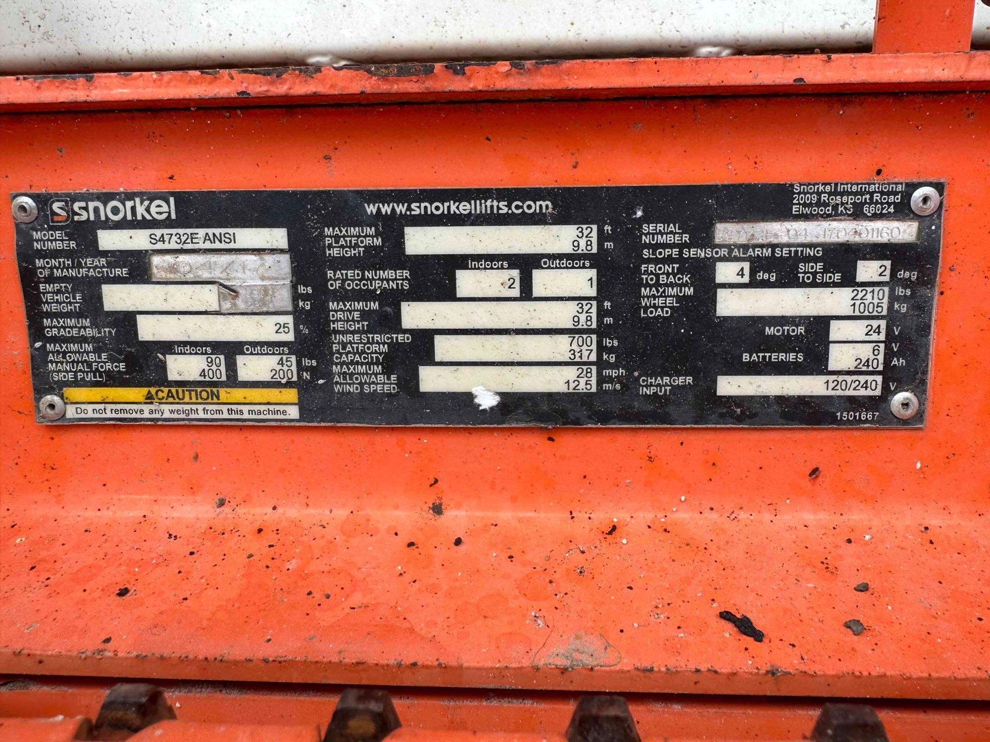 2017 Snorkel S4732 Scissor Lift
