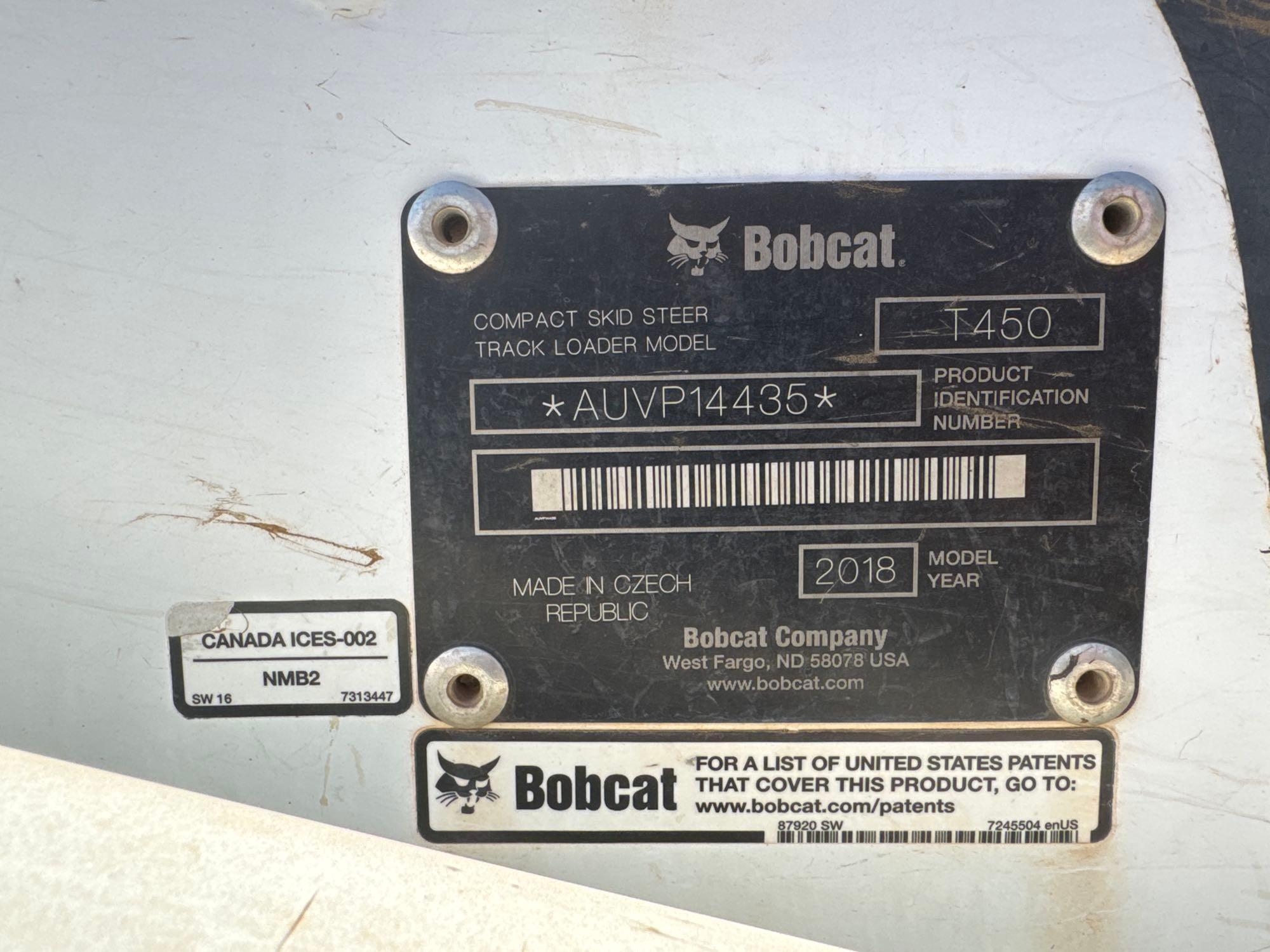 2018 BOBCAT T450 SKID STEER