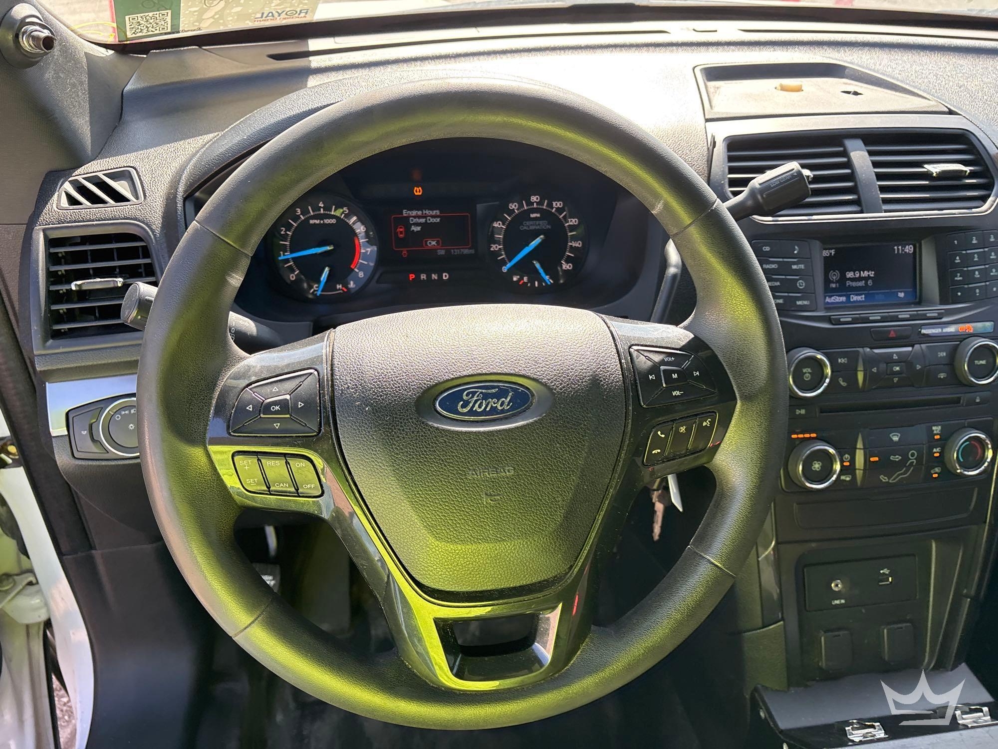 Location: Fort Myers,FL. (Charlotte County Sheriff) VIN:1FM5K8AR4JGC42760.Odom reads:131,798 miles. Powered by a 3.7L V6 gas engine with an automatic transmission. Equipped with:all wheel drive/AWD, pwr: windows, locks, mirrors, and seat,dash screen, hands-free phone connectivity ,adjustable foot pedal, steering wheel: cruise, dash screen, media and phone controls, am/fm stereo with cd player,digital infotainment system, AC/Heat, Havis center console, Pro-gard rear transport seating, and 12v charger. Runs and Drives. Limited function check was completed at check in. Title Branded Police.